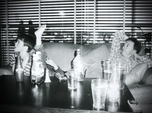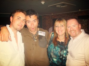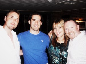 Robbie, Steve, Ali, and Dai starting to get silly in the bar.