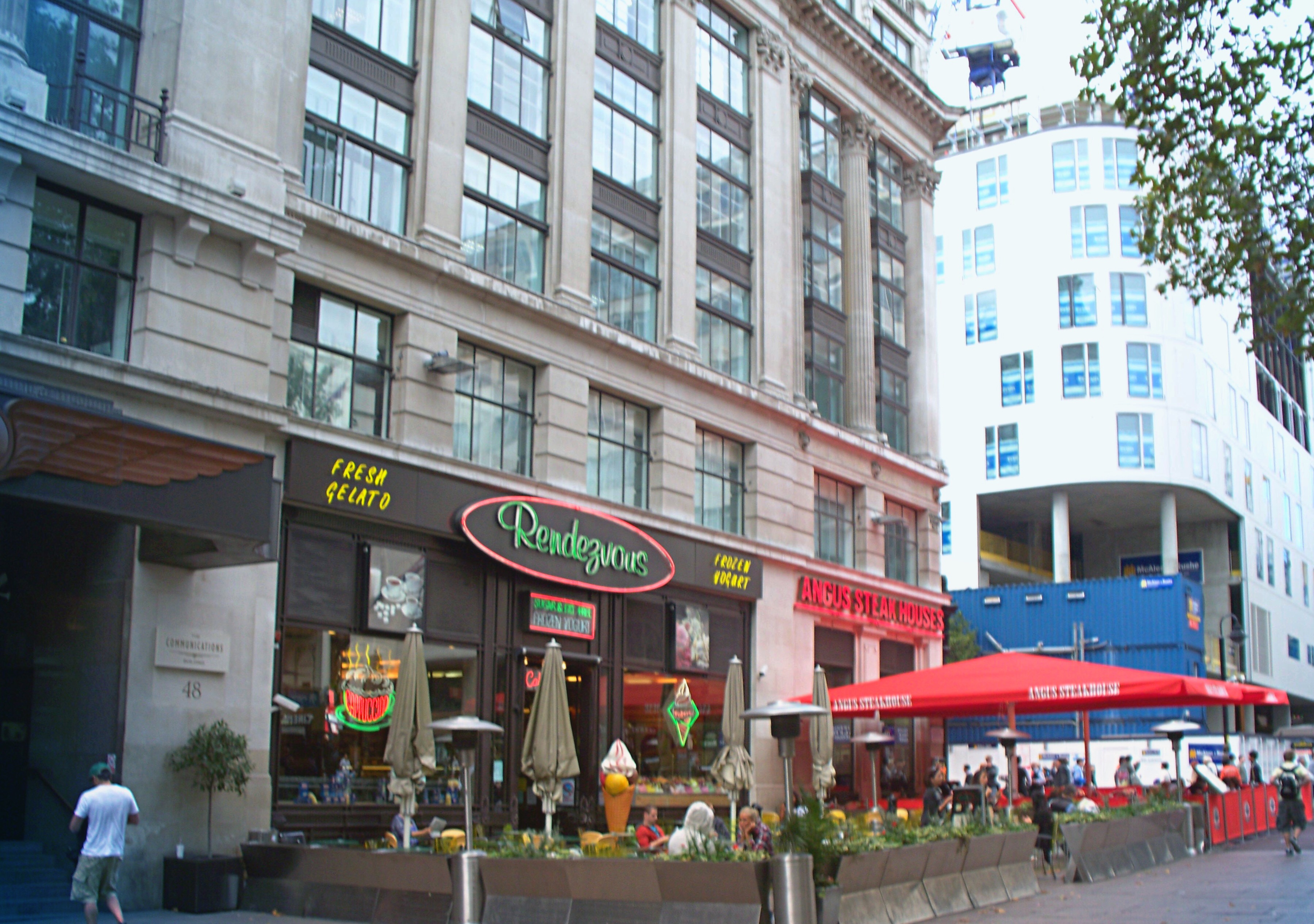 Walking towards our favorite gelato place, Rendezvous. It closed a number of years ago, sadly.