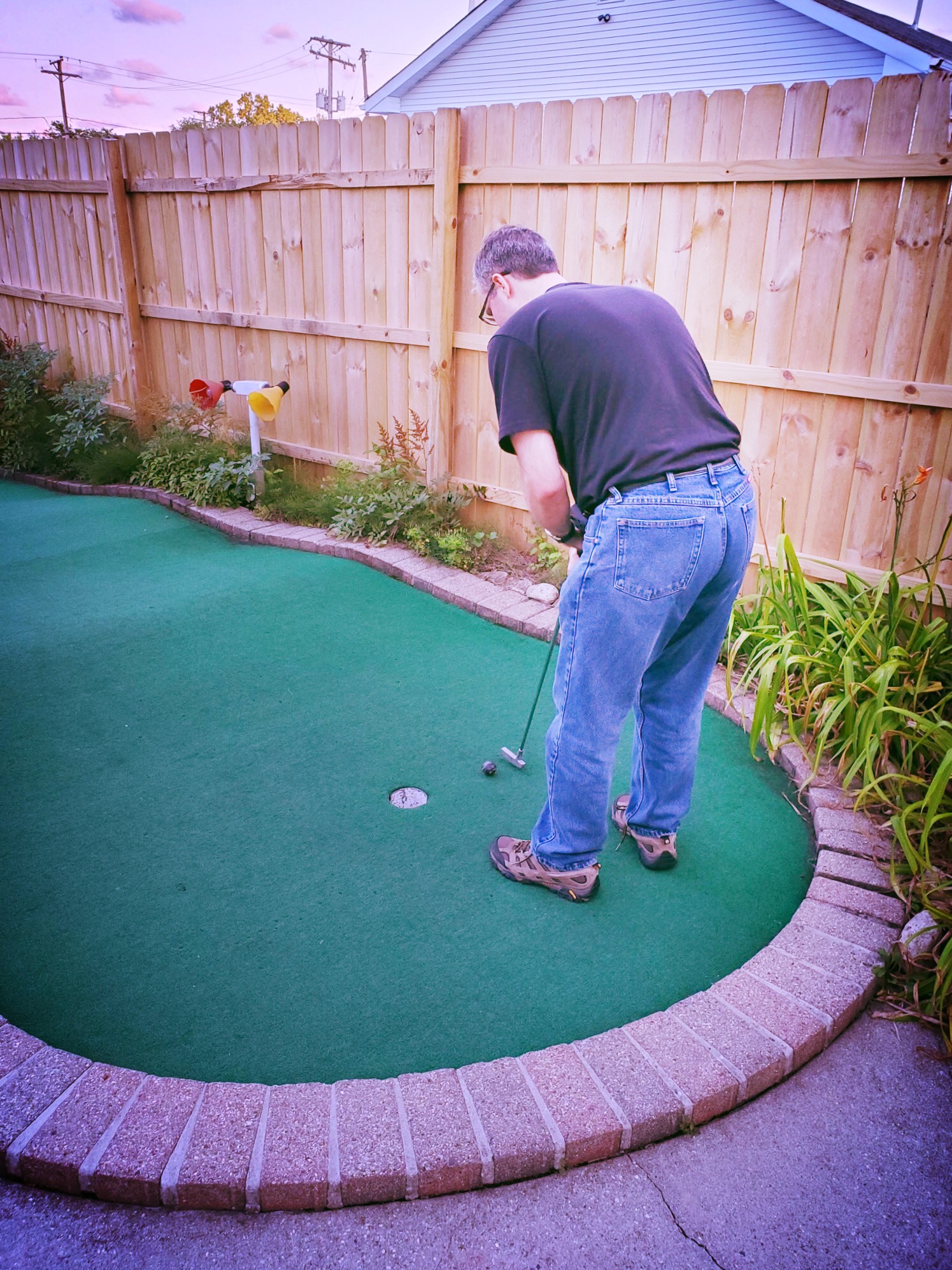Brian highlighting the 18th hole. If you sink it into the hole in the middle, you get a free game!