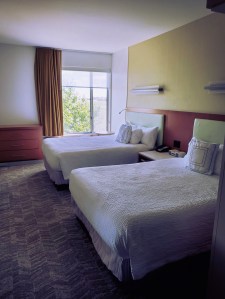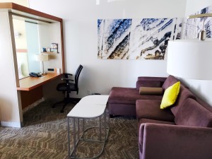 The living room area of our suite at the Springhill Suites in Gurnee, IL.