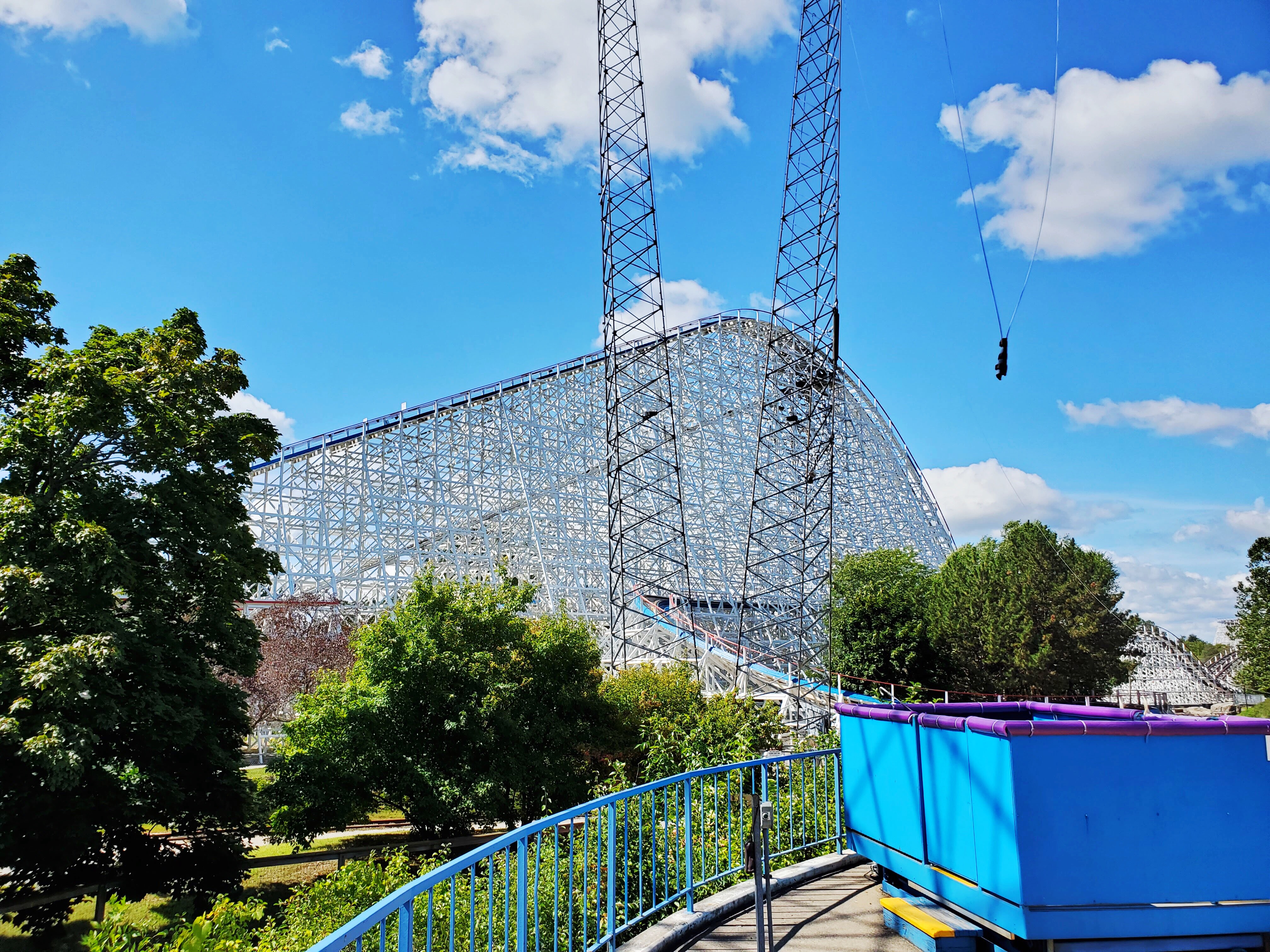 - Goliath – FAVORITE RIDE OF THE DAY!! It’s the world’s fastest wooden coaster and also has the world’s tallest drop for a wooden coaster (180 feet). So good!! It also has a single-rider line, so we used that and then we used it again immediately after because we liked the ride so much.