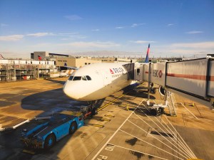After reaching T3, I had a smooth and very quick check-in and security screening (flying Delta One comes with nice perks like a separate security line!) and then made my way to the lounge to relax and start my blog. Thanks to the delayed tube train, I didn’t have a ton of time to chill, but it’s always nice to relax a bit before…sitting for eight hours on a plane. 🙂