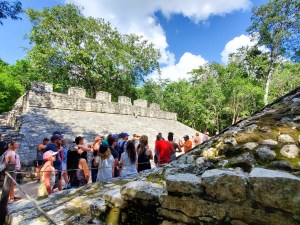 So, what a fun day, right? That wasn’t the end of it! Although everything described above took the majority of the day, we still had Tulum to see, so it was back in the bus for us. Tulum, the site of a Mayan walled city, is only about a half-hour from Coba, so we weren’t in the bus for too long (but definitely long enough for some people to doze off). Everyone was understandably tired, so I think that made our time in Tulum a little less exciting, but we still enjoyed it.