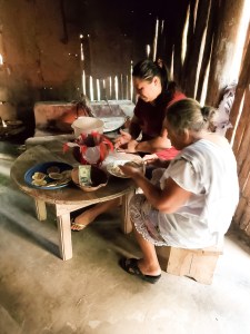 In the kitchen (the building in the picture above), two Mayan women made corn tortillas for small tacos they offered us.