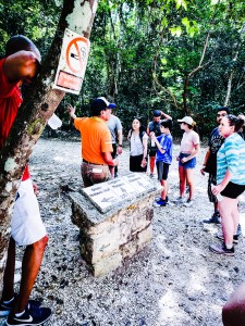 By the time we reached the edge of the jungle, we were more than ready to rest our feet and get some food, which is exactly what we did, at local restaurant Ki-Hanal. We enjoyed a tasty buffet of local food, including rice, beans, pork, chicken, and beef. And the meal (though not the beverages) were included as part of the price of the day drip, so that was nice. This restaurant is owned by people from the local Mayan community and it’s nice to know we’re able to provide some support back to them as we traipse through their land and visit places important to their history.