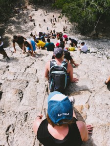 You can see how most people go down on their butts, using the rope in the middle as a guide. It’s harder to go down because you have to be really careful not to slip and fall forward.
