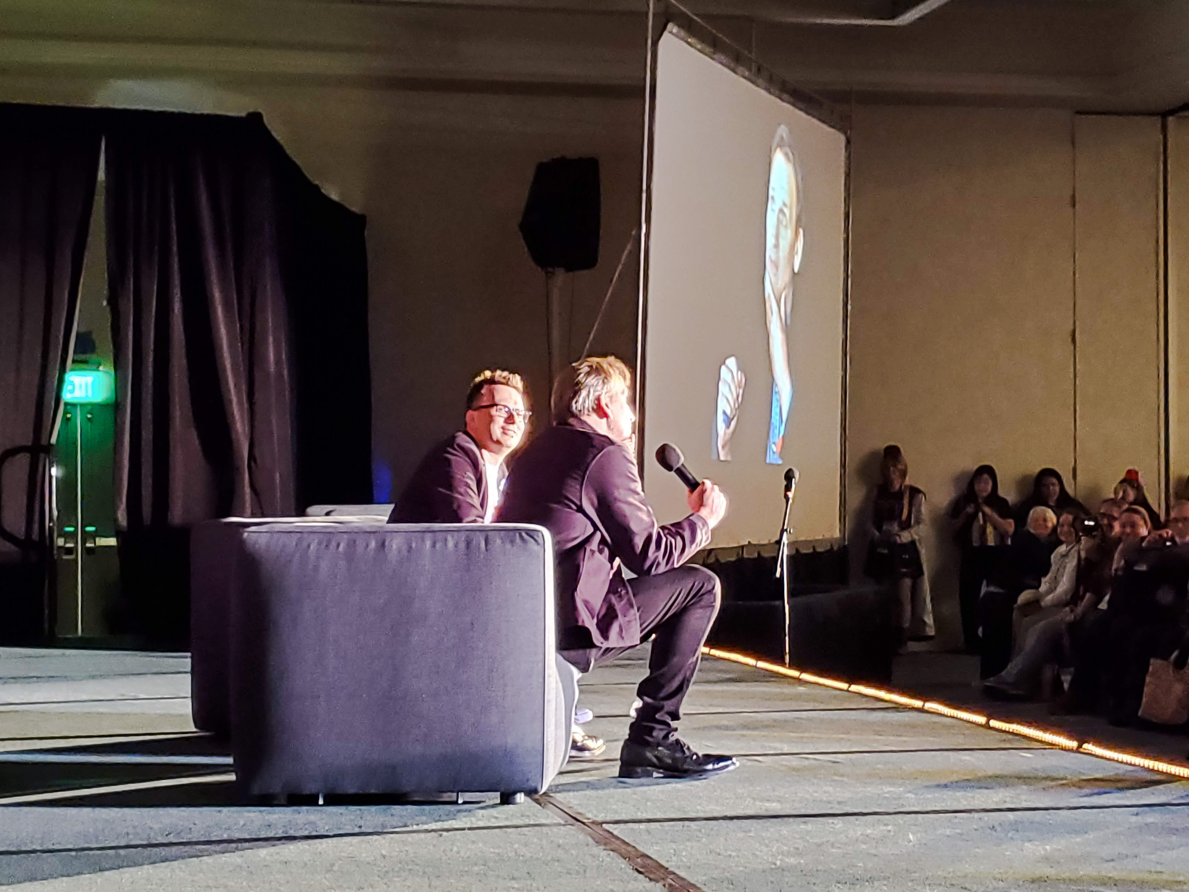My friend Ken interviewing Geoffrey Beevers, who played The Master and is one of the guests I worked with this year.