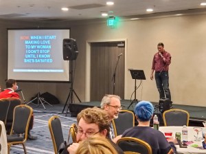 In addition to really enjoying the work I do at conventions, the other big reason I attend is to see my friends. With us living all over the world, it’s amazing to get the chance to hang out when all of us come to the same place at the same time. So when we aren’t trying to attend some convention activities (which we all do to some extent!), we’re chatting in one of our rooms, enjoying a beverage in the lobby, or eating a nice (well, decent, at least) meal, usually in one of the hotel restaurants. Yes, it’s a weekend about celebrating Doctor Who, but at the end of the day, this convention (and the others I attend) are really about friends and fun.