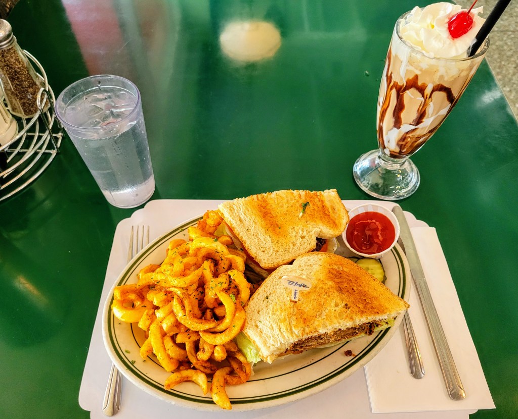 The ambiance of the restaurant was neat and felt suitably throwback, but the food was only okay. The service was quick (being a weekday afternoon, there were only a few other people eating there), so that was a bonus, but I wasn’t wowed by my meatloaf sandwich (it felt like it was just a little bit overdone). It was tasty enough, but for $30 (including tip), I would like to have had something a bit better.