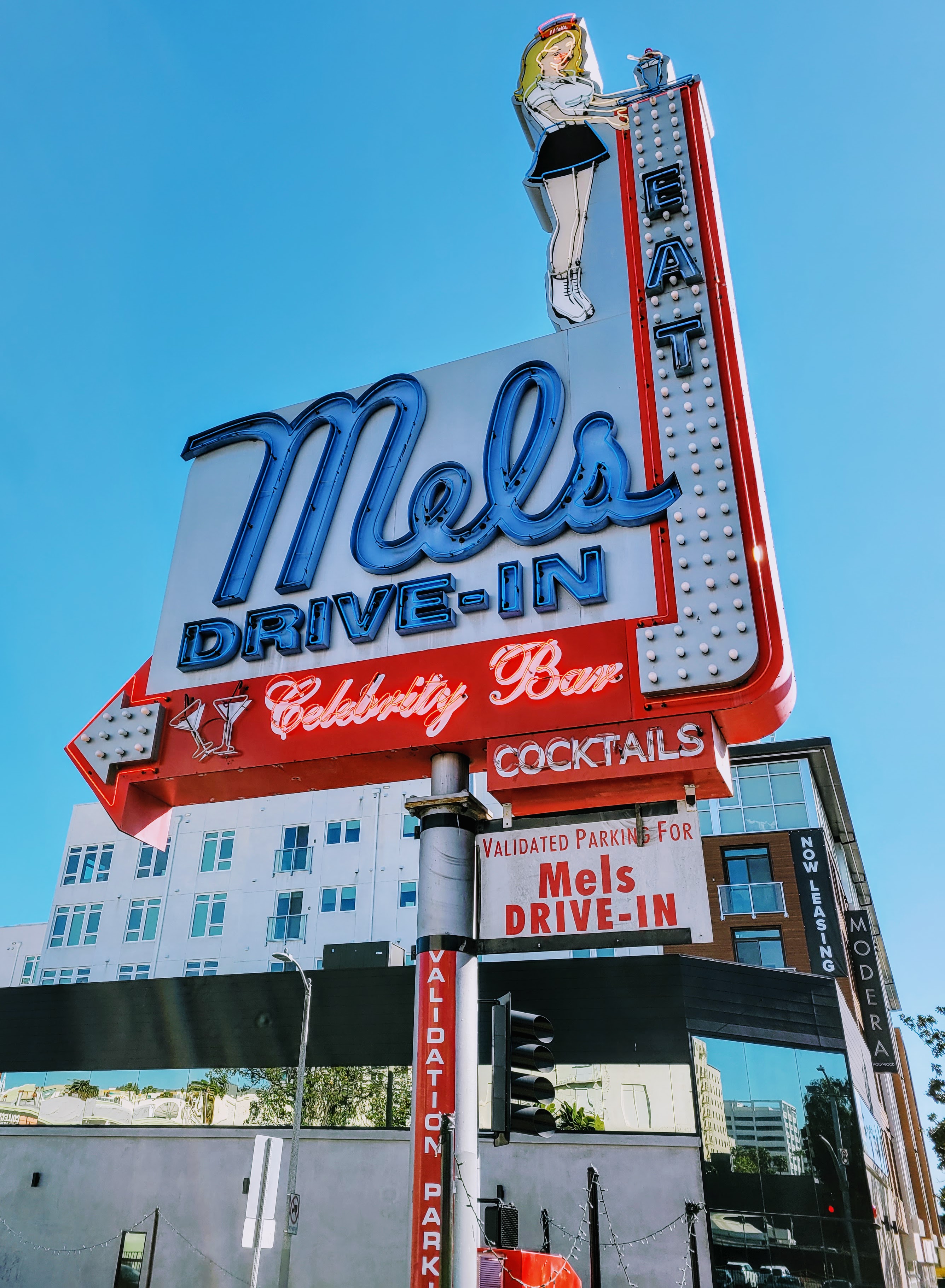 And that brought my time at The Hollywood Museum to an end! By this time, it was early afternoon and I was feeling a little hungry, so I decided to avail myself of the nearest restaurant, Mel’s Drive-In. It’s literally next door and you can walk between the two by means of a shared hallway. I’ve known it was there since my first visit to the museum, but I’d never eaten there before. Since I was flying solo and hadn’t eaten since my airplane charcuterie, I figured this would be the perfect chance to try it.