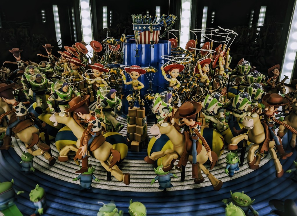 Before leaving, we made one final stop. Well, I guess it was two stops. The first was the Toy Story 3D Zoetrope, which is *so cool* (check out more about zoetropes here). What is it, you may ask? It’s a collection of 214 models on a large turntable, which may not sound especially interesting, but when that turntable starts moving and a collection of strobe lights start flashing on them, it looks as if the the models are actually animated. What’s especially cool is that you get to see the whole process from start to finish, as the turntable starts from a stationary position, then slowly starts turning and, as it gets up to speed, the lights start flashing and the animation begins. It’s really neat!