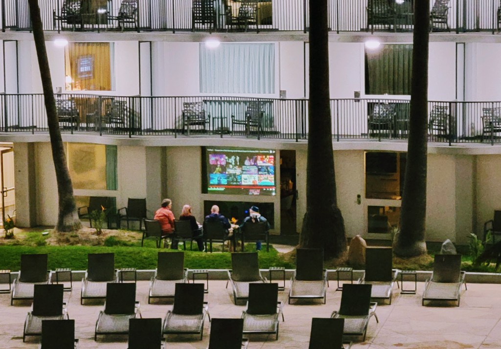 Because the convention starts some actual events on Thursday evening, most of our friends had arrived (or were about to) by the time we got back to the hotel, so we spent the rest of the day catching up with various friends, most of whom we hadn’t seen in person for two years. Oh, how great that was! A few of us (the three of us, plus our friends Jason and Barsky) had dinner at JW Steakhouse, the swankier of the restaurants in the hotel. My HiHo lunch kept me pretty full for most of the day, but I enjoyed sampling some of the charcuterie we got, plus a bowl of French onion soup. It was amazing to be sharing a meal with great friends! Afterwards, I picked up my convention badge and poked my head into the convention’s traditional Thursday night ice cream social for a few minutes before heading back for an evening of socializing with more friends in our suite of rooms.