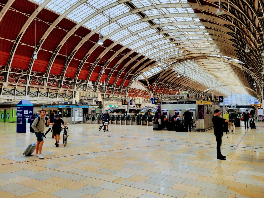 For better or worse, this day trip involved catching a train around 7 AM from Paddington, which meant I had to be awake by about 6 AM – certainly NOT ideal when on vacation, but we travelers have to make these sacrifices, don’t we? The nice thing about being up and needing to get around London at that time is that the city is fairly quiet, which is something central London definitely isn’t most of the time, so it’s neat to experience. And thankfully, I just had to meander to the station that’s a minute or two from the hotel to catch the tube to Paddington, so it wasn’t a long walk. Once at Paddington, it was easy to follow the signs to the main station, where I quickly found my platform. In a first (for me), I booked specific seats on this trip (rather than just sitting in whatever was available), so I just made right for it when I got to the platform. Just made the travel experience that much easier!