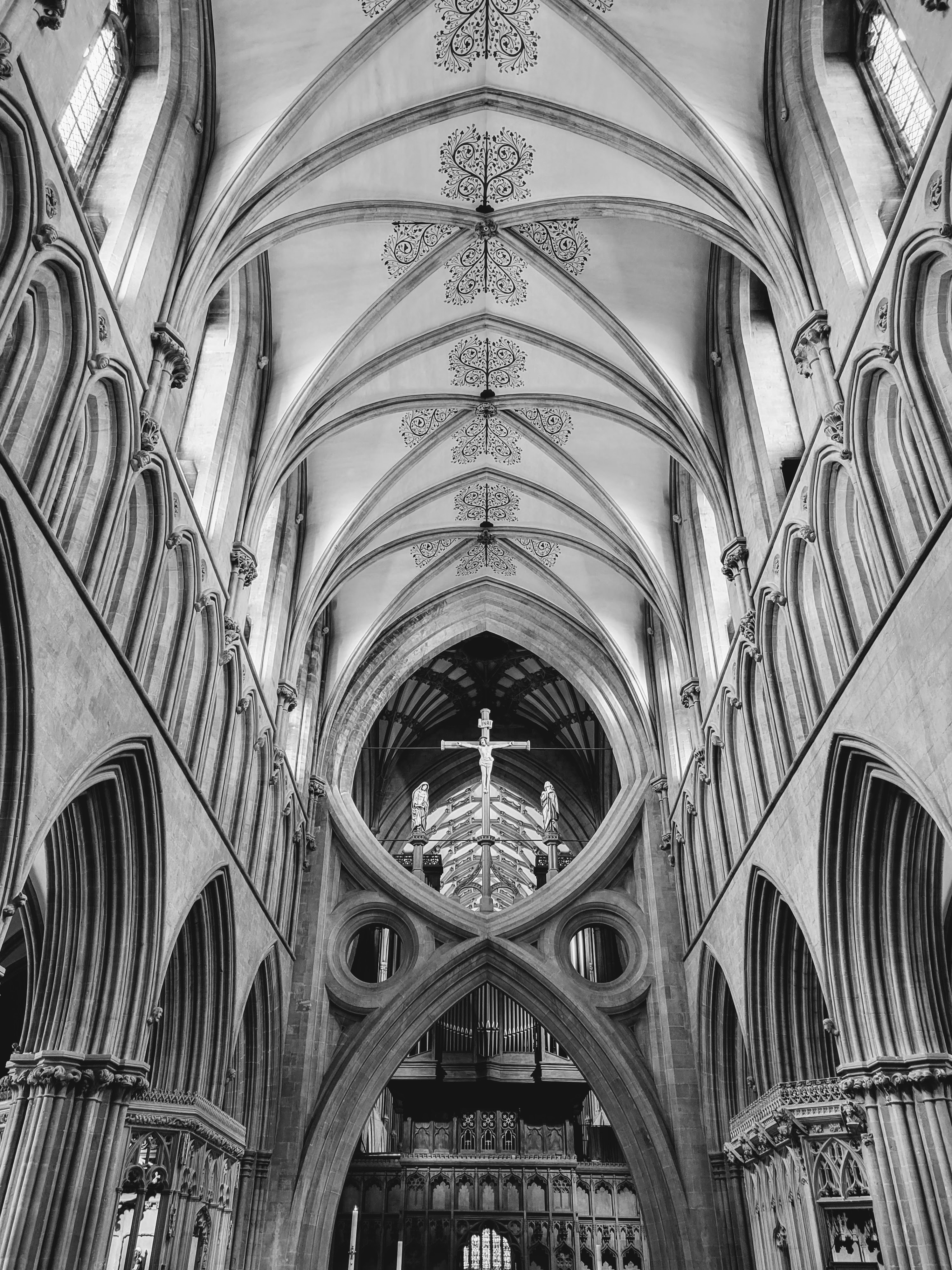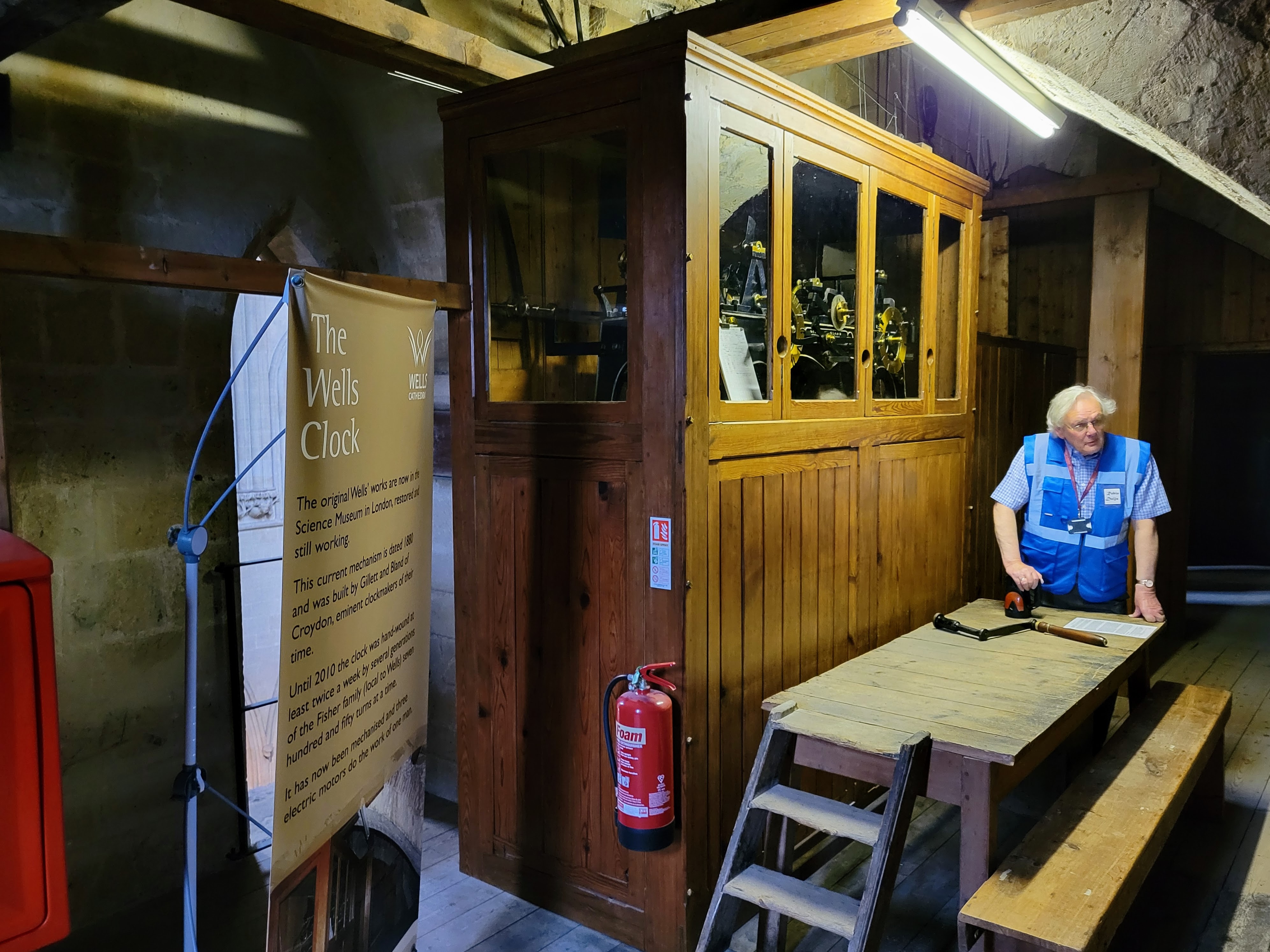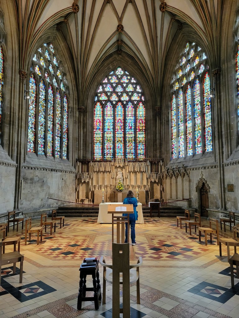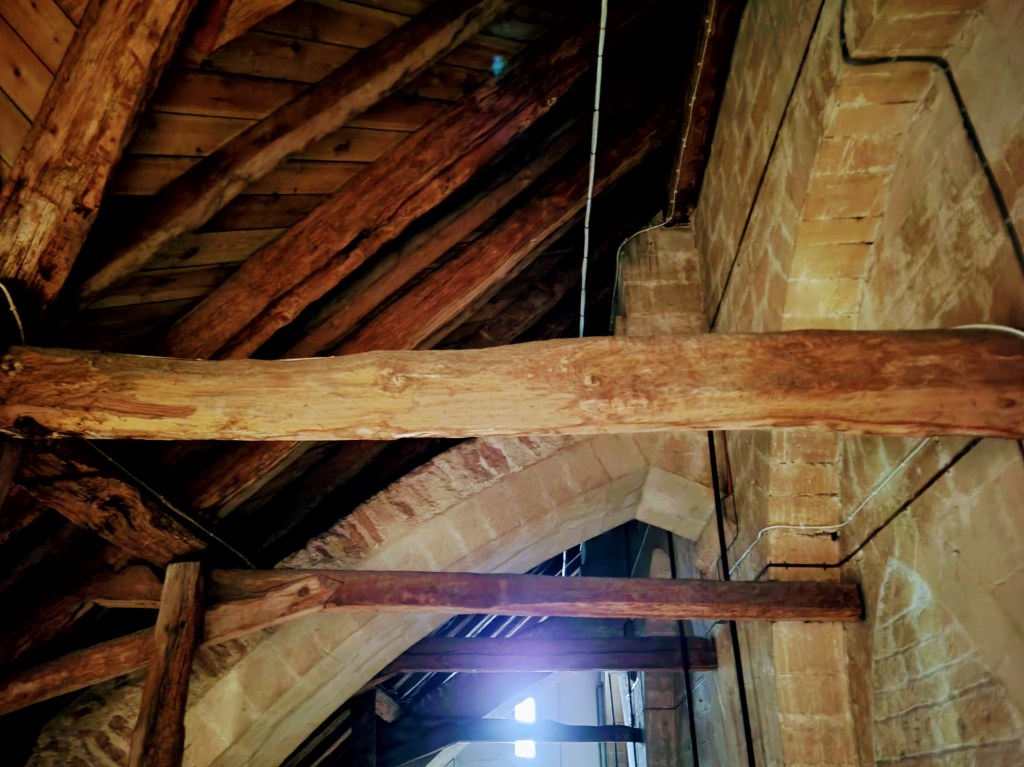 I didn’t actually have much time to look around the exterior though as I had to get inside for my tour! This wasn’t just any ol’ tour though – it was the High Parts Tour which, I can say now, is a really unique way to explore any building, but especially one as old and storied as this cathedral. Rather than a standard tour around the building, the High Parts tour focuses on the hidden, behind-the-scenes stuff. We got to go behind the Wells clock to see its workings, we got to stand behind the holes where the choir would have sung on Easter Sunday to welcome the dean and the congregation, we got to walk on top of the nave (not outside the building, but in the space between the top of the nave and the roof), and more. Such a cool experience! It’s one that does require a fair amount of stair climbing (up and down) at times though and some of the spaces are a bit tight, so keep that in mind if you’re considering this tour. If you do it though, you’ll definitely experience 90 minutes of interesting, well-presented information! And at £15/$18 USD, you won’t have to pay a lot for it! I think this tour is fairly popular though, so definitely book early to avoid disappointment. I booked mine probably six weeks before my trip and even at that point, I think there were only 3-4 spots left (there were ten or so people on my tour, which I assume is the maximum).