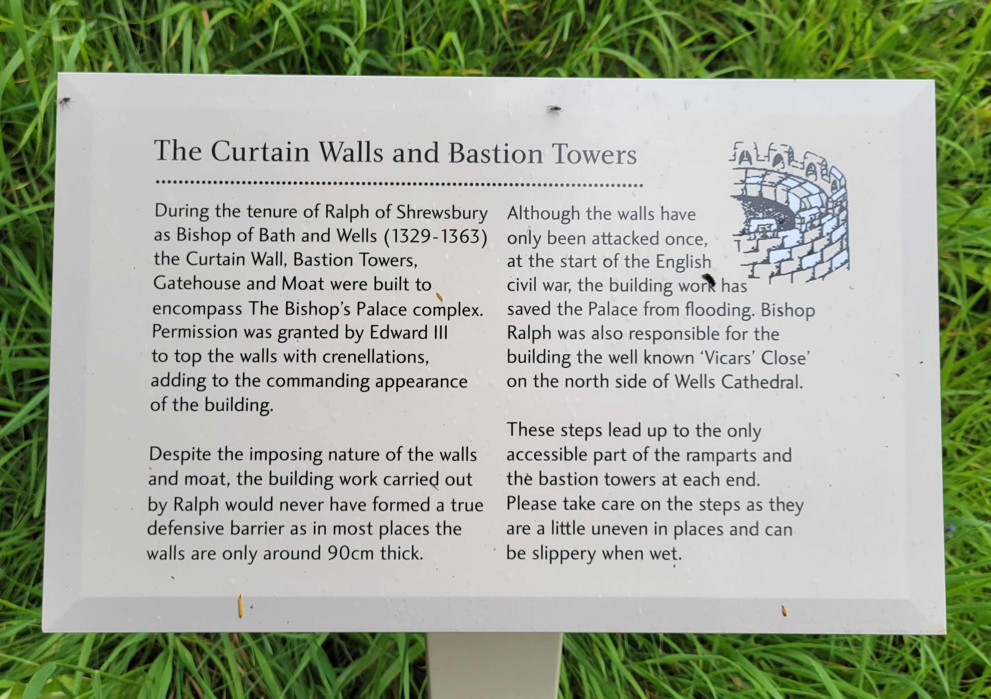 Once my new pal Ian got me to Wells, I hit the ground running to ensure I could see all the things I wanted to (and had already booked). Although only one thing during my day was booked for a specific time (more on that in a bit), I had limited time in both Wells and Glastonbury and having to wait at the station for an hour meant that I didn’t have as much time as I wanted, so I headed straight for The Bishop’s Palace (weird name, I know, since I don’t think of bishops living in palaces), which has been the home of the local Church of England bishops for over 800 years (I guess it’s called Bishop’s rather than Bishops’ because only one bishop lives there at a time?). That’s still true today for some of the space, but the majority of it is used for public functions and, of course, as a place for tourists like me to visit.