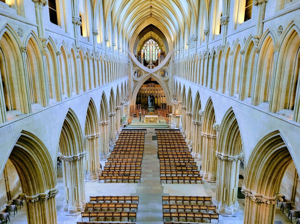 With my time at the palace at an end, it was time to move on to the next item on my itinerary – a guided tour of Wells Cathedral (next door to the Bishop’s Palace). It’s the seat for the local bishop (hence why the bishop lives next door) and was built in the late 13th century, so it’s pretty damn old. I’ve seen plenty of cathedrals and churches on my travels, but this one really stood out from an exterior standpoint, with its Gothic design and lots of interesting nooks and crannies.