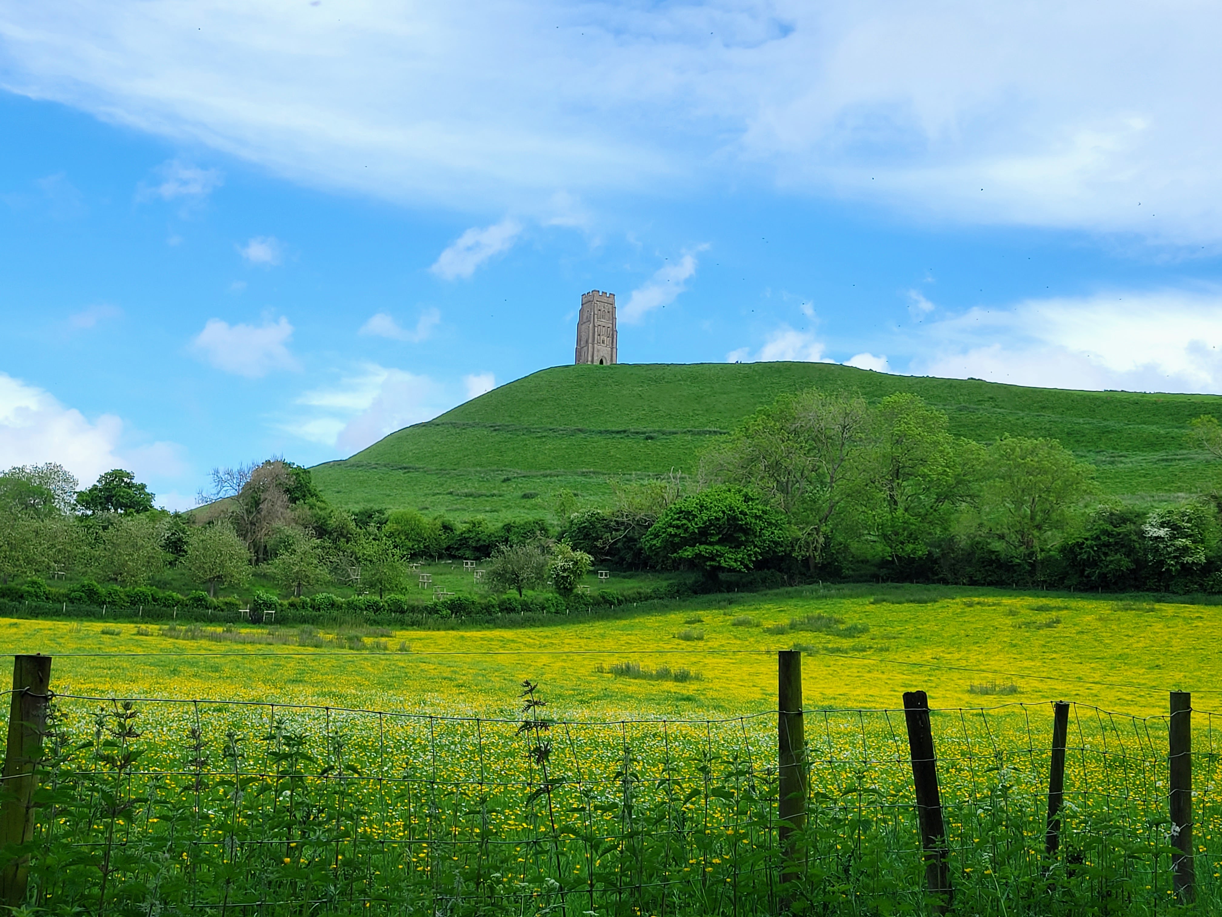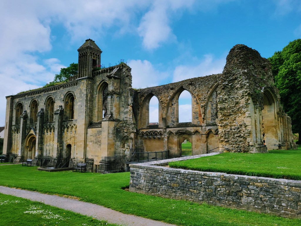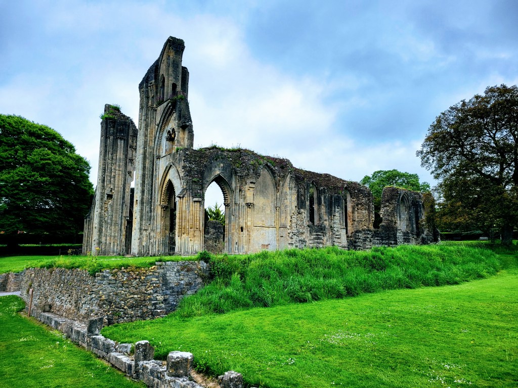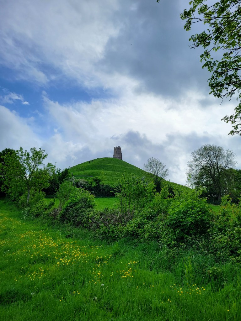 With sights seen and my hunger satiated, it was finally time to move on to Glastonbury. Hurrah! I asked at the pub about the best place to get a taxi and was told the bus station would have plenty of them, which thankfully turned out to be true. There was a taxi rank there, so I just went to the first driver in line, who happily drove me to Glastonbury, sharing all sorts of into about the area while he did so. Knowing that I had already booked a taxi from Glastonbury back to Castle Cary (I figured I may as well do that while I was sitting at the station in the morning), this was my last transportation-related hurdle to get through, so I was a happy traveler. And I was even happier as the sun kept playing a (mostly) winning battle with the clouds, which I knew would make the photos at my next stop all the better. Speaking of which…