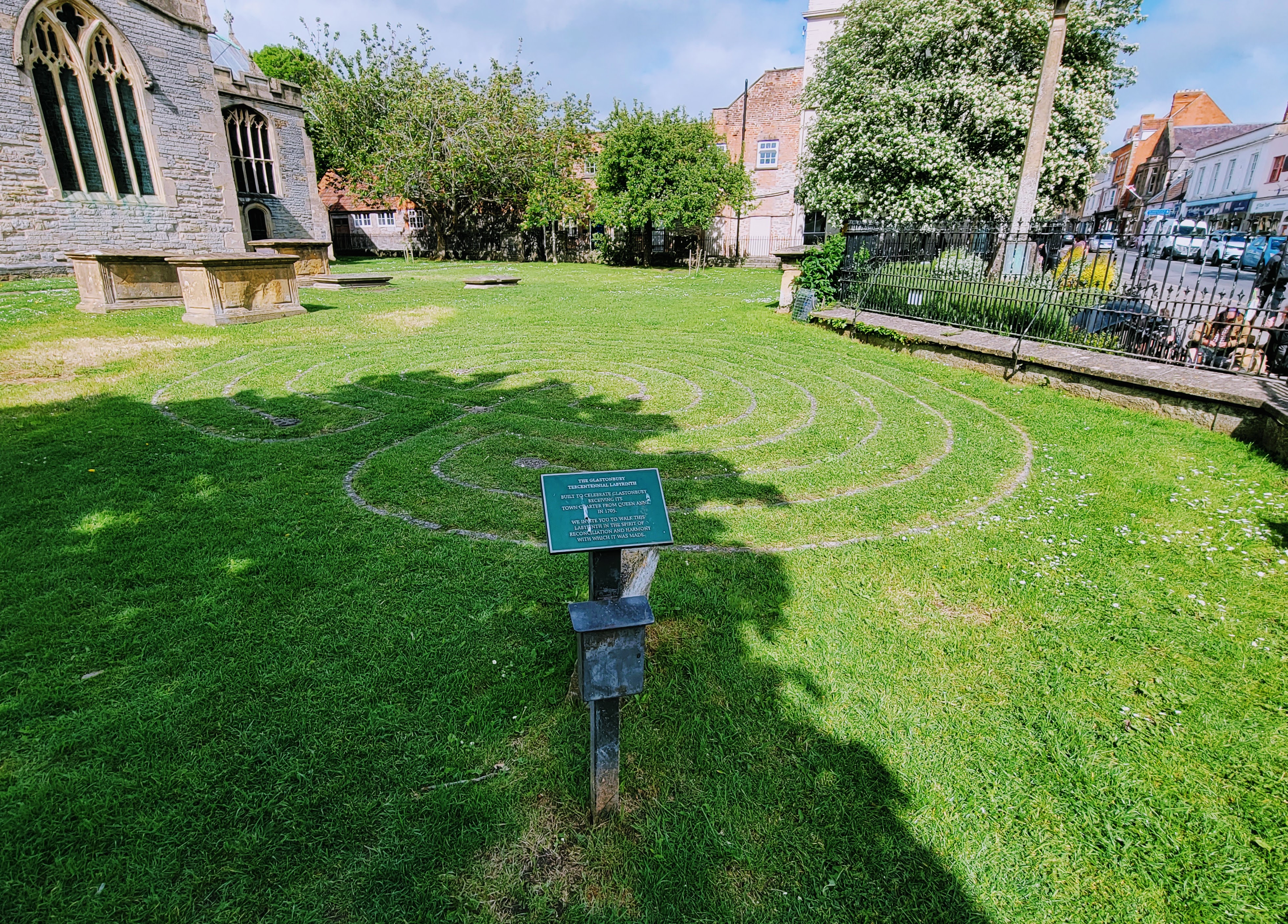 The church is St. John the Baptist, while the second photo shows the Tercentennial Labyrinth, just in front of the church.