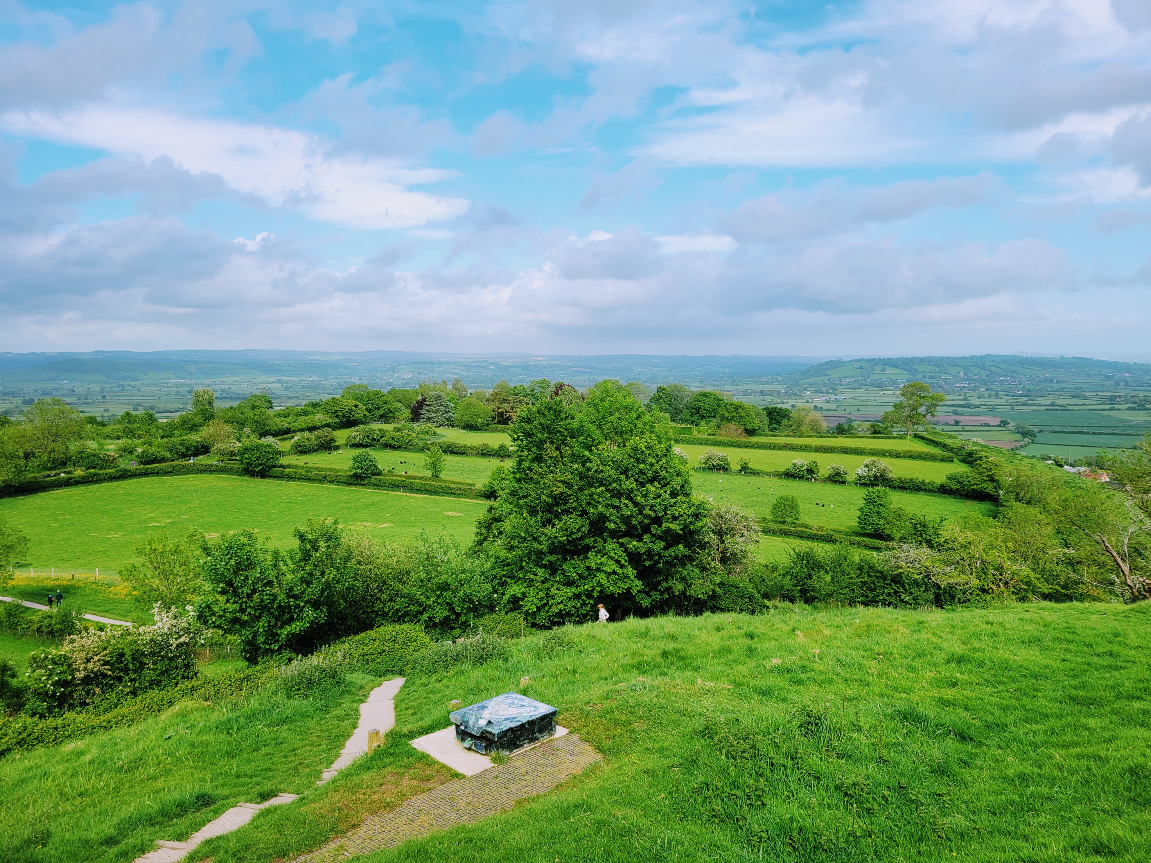 Honestly, this is one of experiences that’s much more about the journey than the destination because a) the top of the hill isn’t all that big and b) there isn’t anything there, except for the tower (and the fabulous views, of course). The tower is said to be the remains of a church that once stood on the hill (can you imagine having to walk up a huge hill just to go to church every week??) and today, it seems to be a place where people go to chill, meditate, and enjoy the views (based on the folks I saw there, at least). It’s a healthy climb, to be sure, and it’s ALL uphill to reach the summit (which makes sense since it’s a hill, but I call it out because I felt like I started walking uphill the moment I started heading towards it). Depending on where in Glastonbury you’re coming from, plan for at least 30 minutes of uphill walking to get there. There is a concrete path all the way to the top, but your legs will be feeling it by the time you reach the top. But if you can do it and the weather is nice and clear, I can’t recommend it enough!