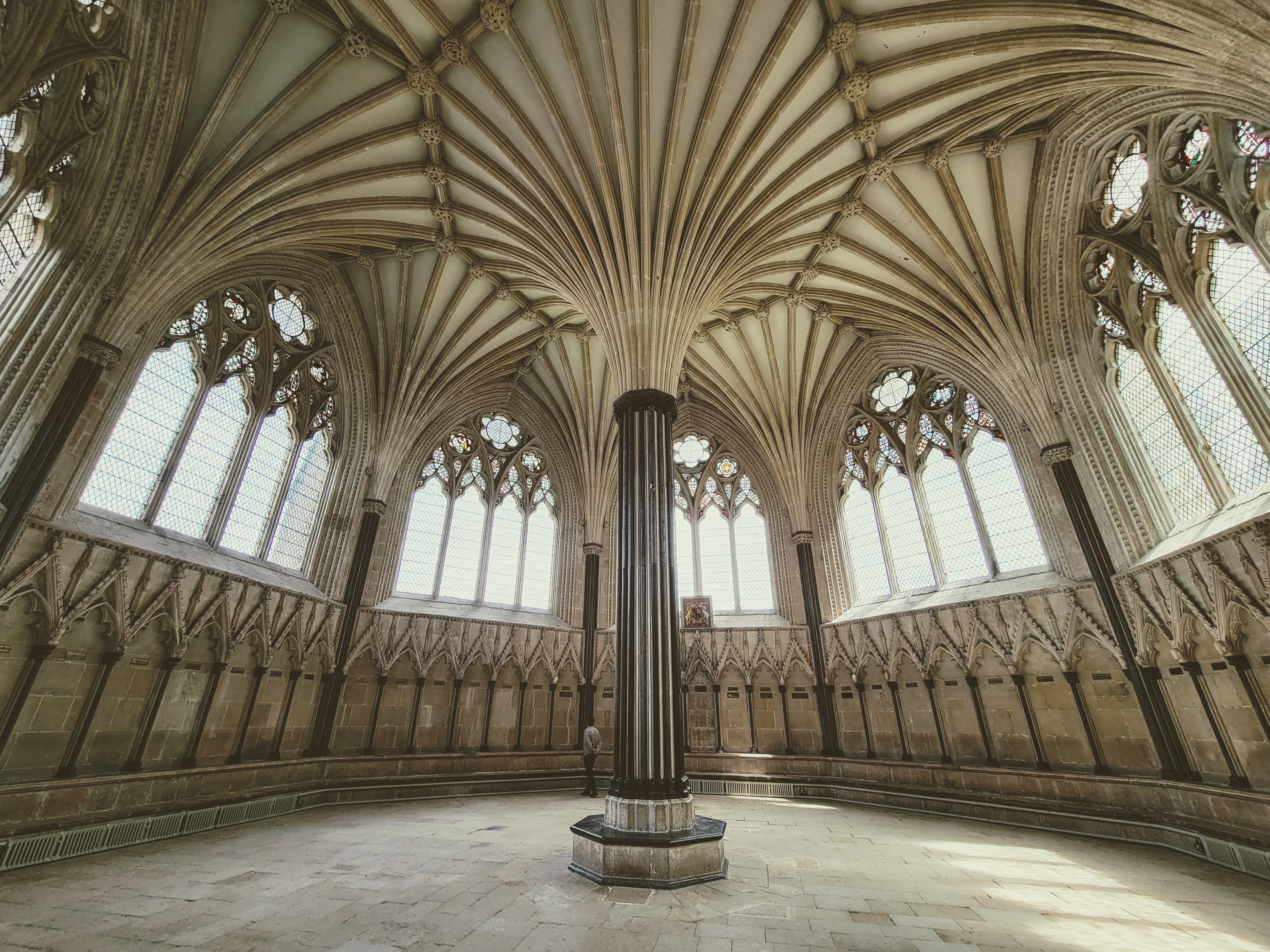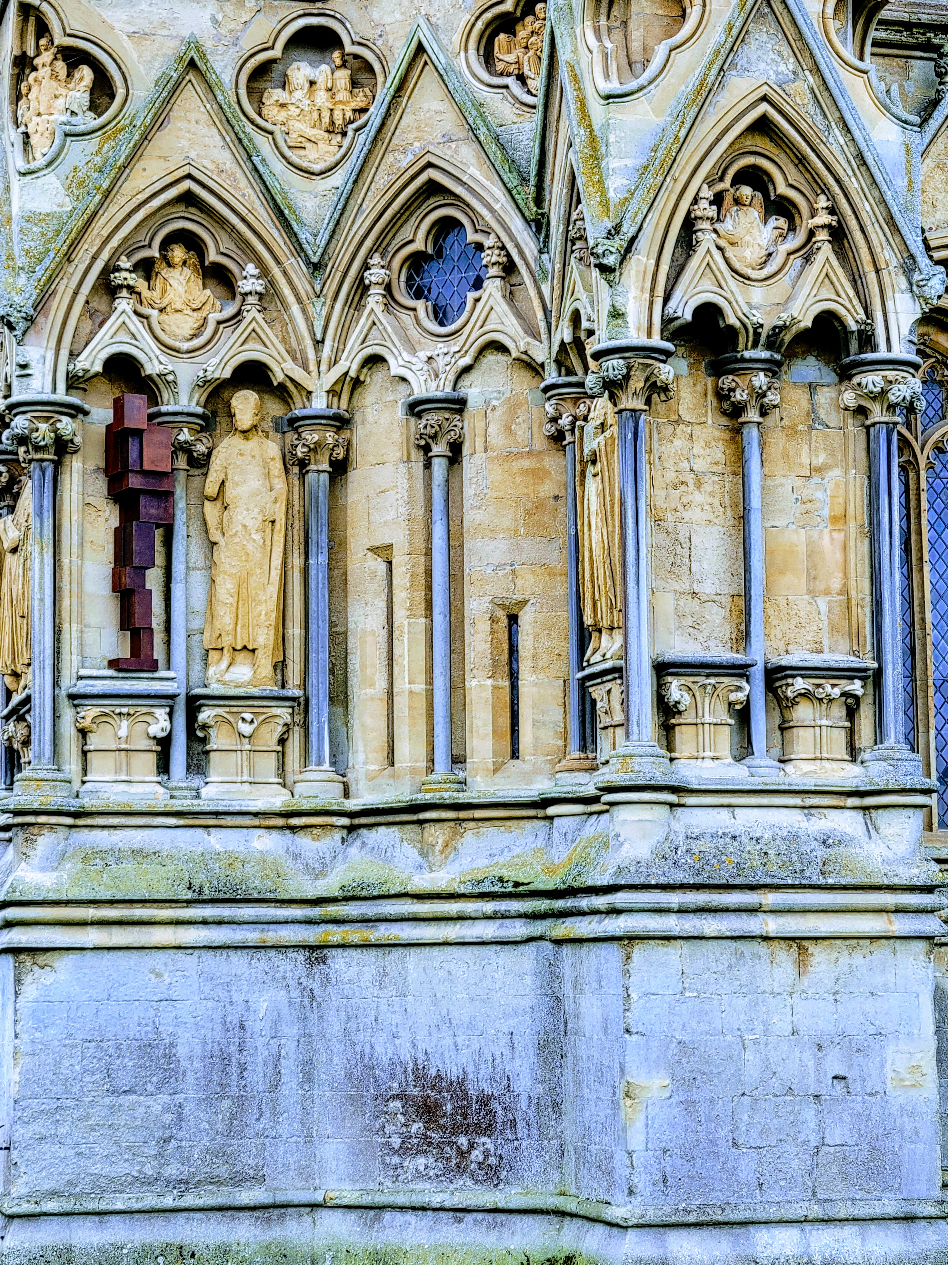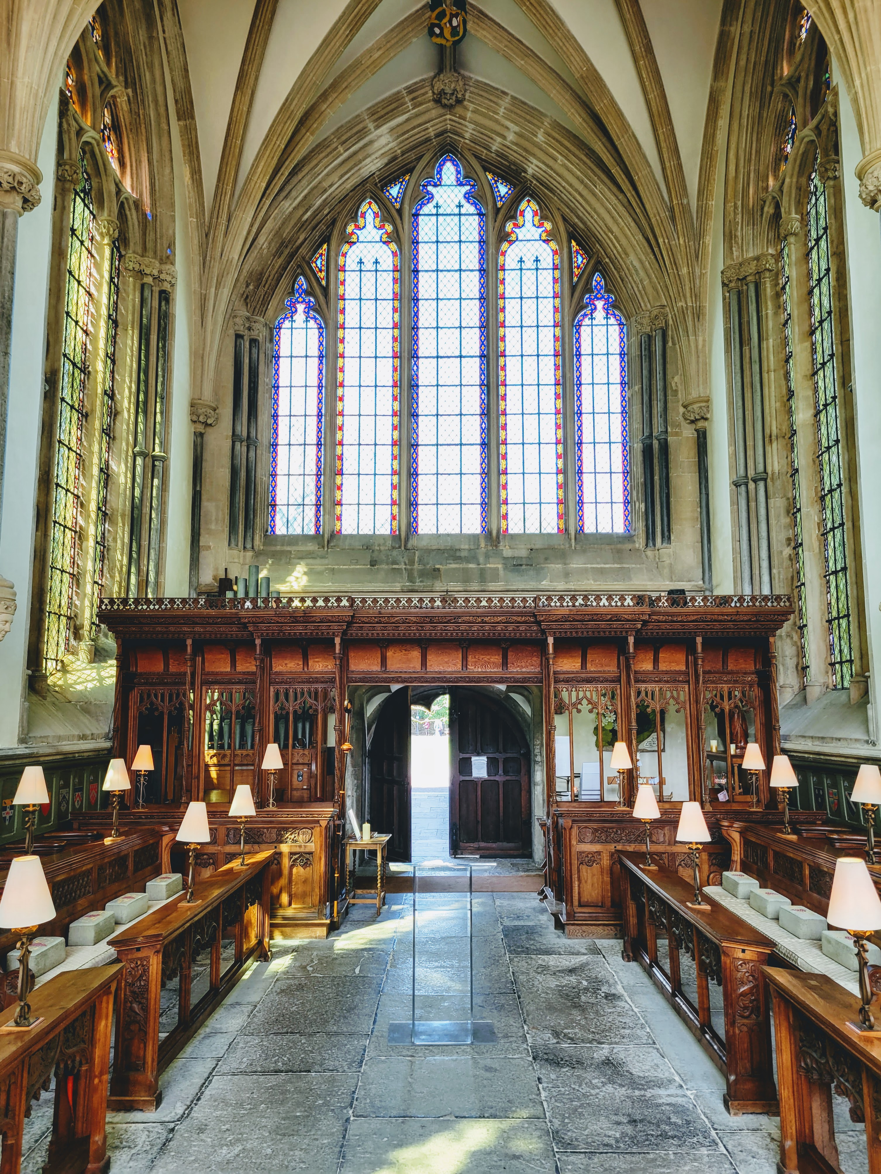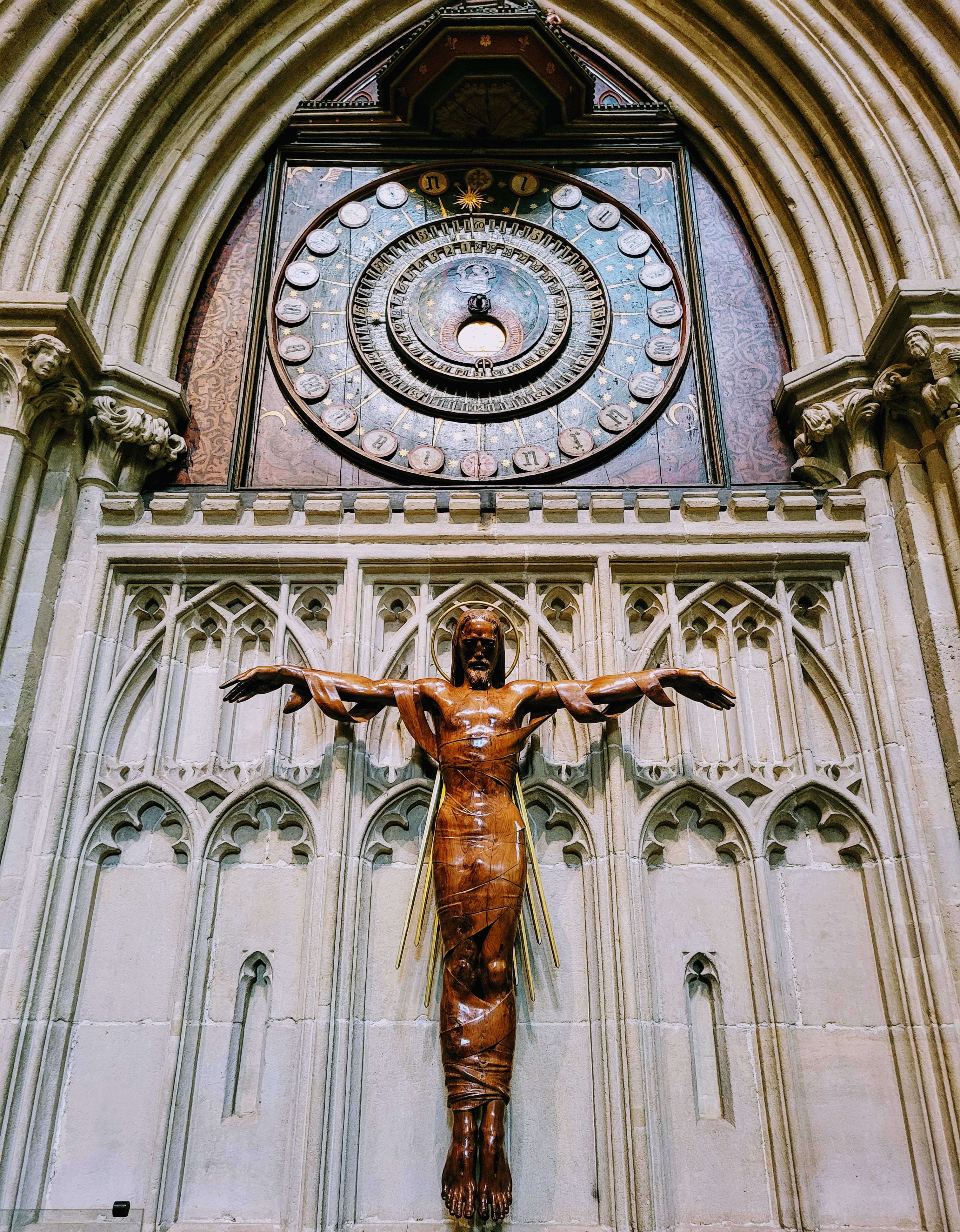 I didn’t actually have much time to look around the exterior though as I had to get inside for my tour! This wasn’t just any ol’ tour though – it was the High Parts Tour which, I can say now, is a really unique way to explore any building, but especially one as old and storied as this cathedral. Rather than a standard tour around the building, the High Parts tour focuses on the hidden, behind-the-scenes stuff. We got to go behind the Wells clock to see its workings, we got to stand behind the holes where the choir would have sung on Easter Sunday to welcome the dean and the congregation, we got to walk on top of the nave (not outside the building, but in the space between the top of the nave and the roof), and more. Such a cool experience! It’s one that does require a fair amount of stair climbing (up and down) at times though and some of the spaces are a bit tight, so keep that in mind if you’re considering this tour. If you do it though, you’ll definitely experience 90 minutes of interesting, well-presented information! And at £15/$18 USD, you won’t have to pay a lot for it! I think this tour is fairly popular though, so definitely book early to avoid disappointment. I booked mine probably six weeks before my trip and even at that point, I think there were only 3-4 spots left (there were ten or so people on my tour, which I assume is the maximum).
