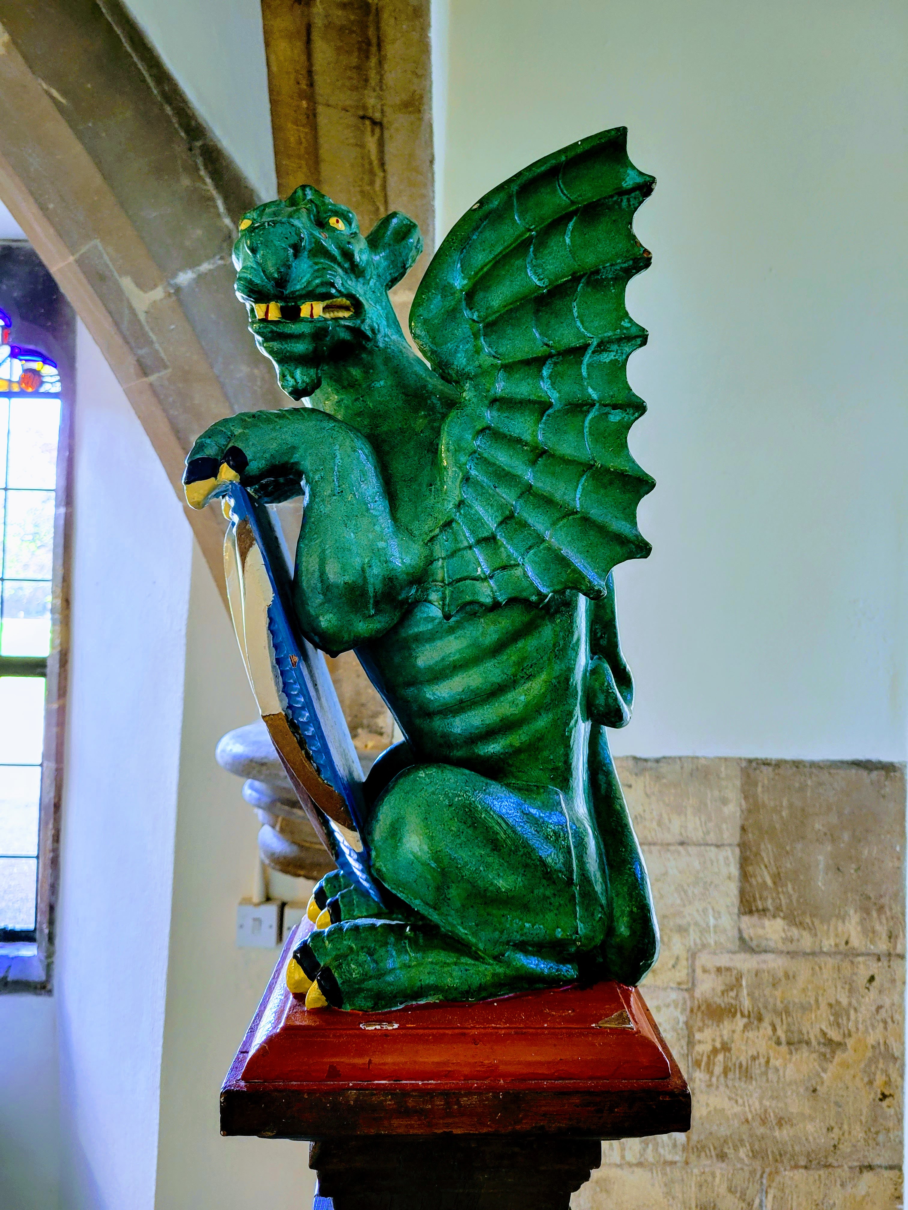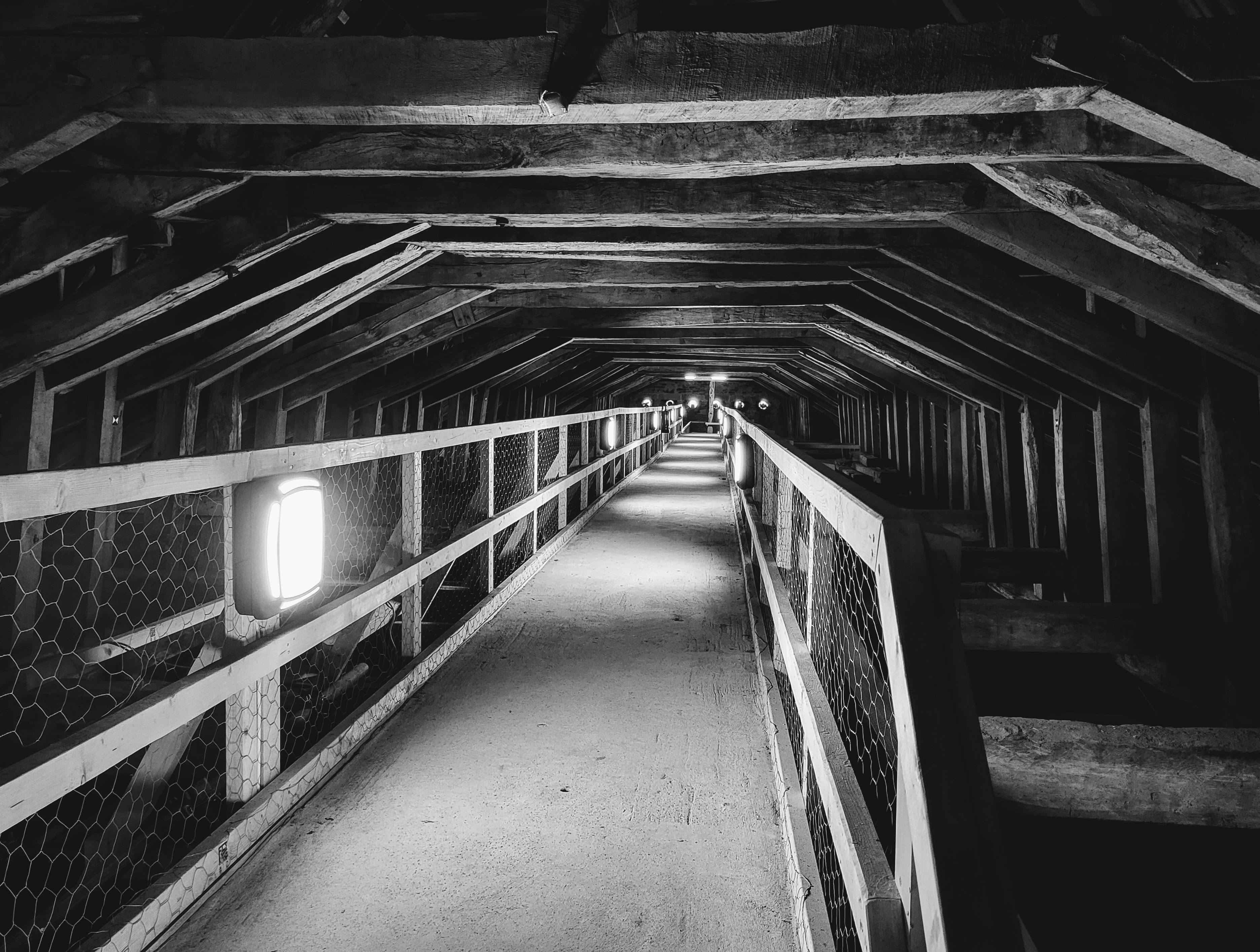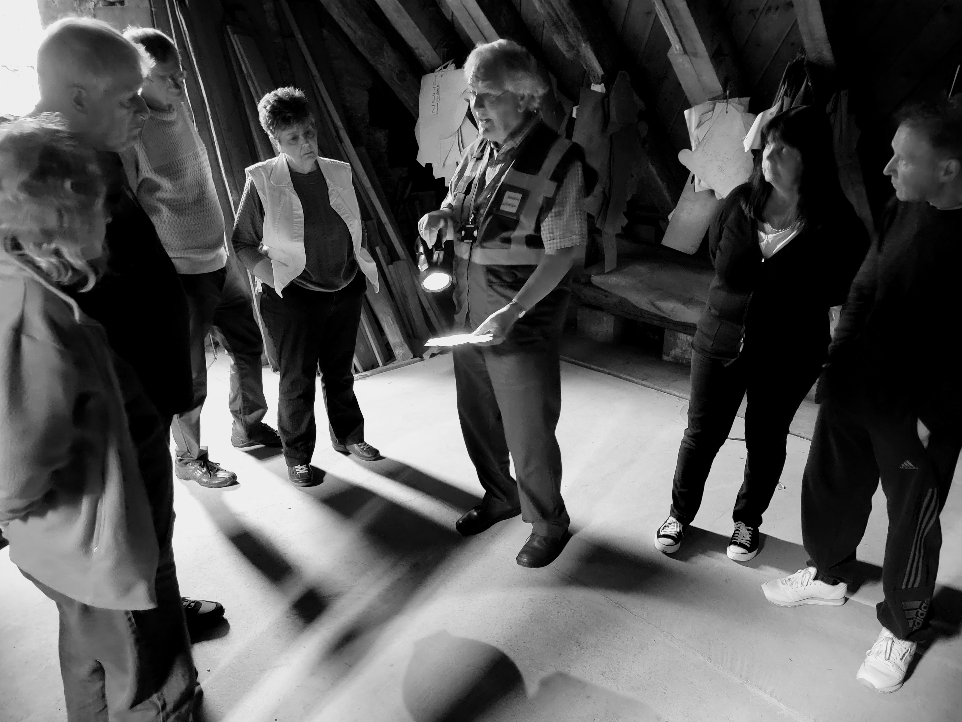 Taking a couple of photos inside the church before we scurried behind the walls.