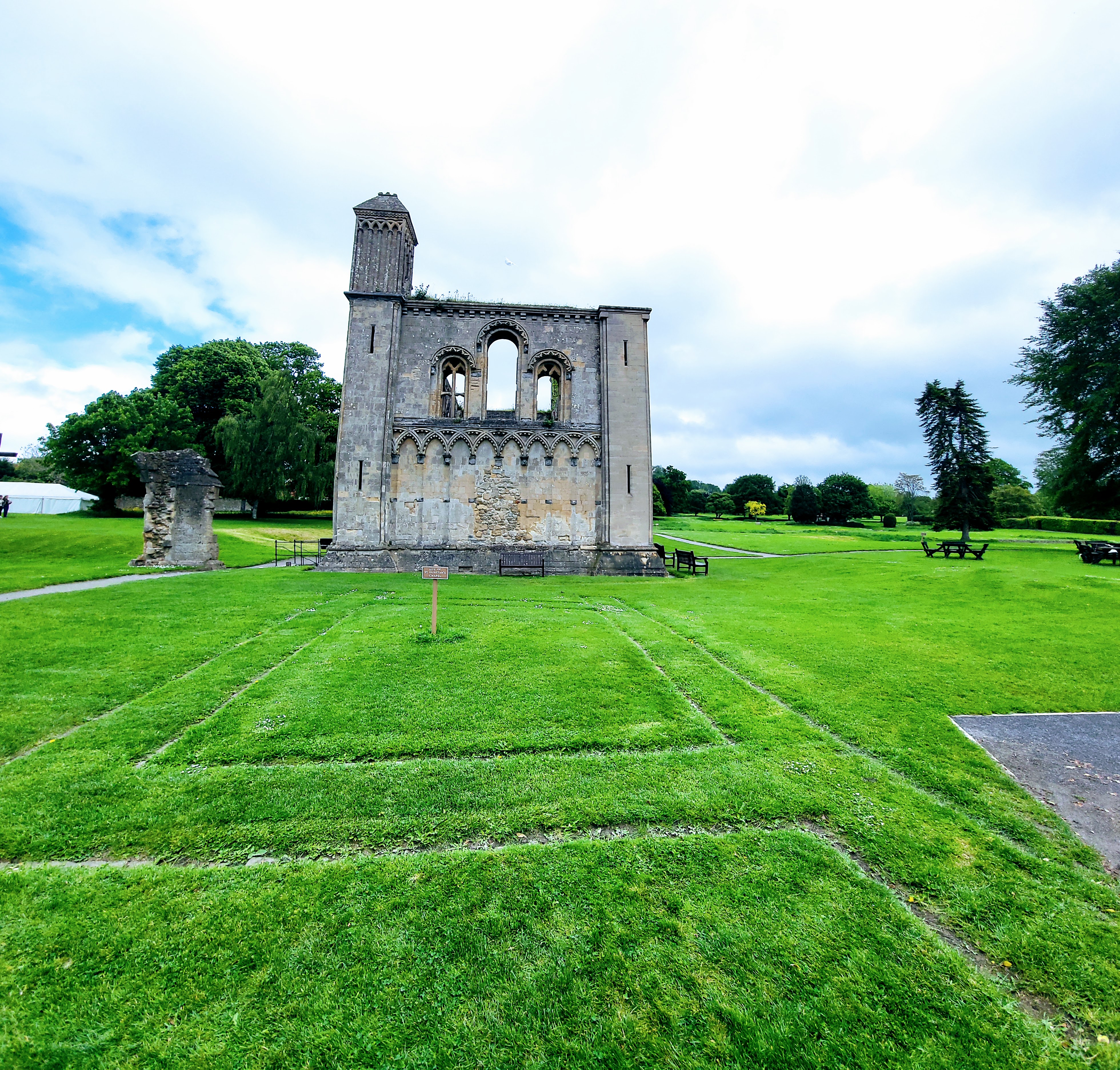 Glastonbury Abbey! As I said at the beginning, this was the first time I’d been back since that 2003 trip, so it felt a little surreal in some ways. Déjà vu, but with good reason because I absolutely had been to this place before! You may be thinking “Another church?!” but this abbey is in total ruins, so it’s more an exploration of what used to be, which I find fascinating. During my first visit, I’d never seen anything so ancient and I know that helped solidify my love of travel and the desire to see other things like it, so it was just cool to be back. There were just a few other people there (benefit of going on a Monday afternoon, I guess), so I really got to look around a lot. There were a few occasions where I was struck with “Oh wow, I totally remember this exact view!”, so that was neat. And the longer I stayed, the more and more sunny it got, which was especially welcome because the forecast looked quite rainy at one point.