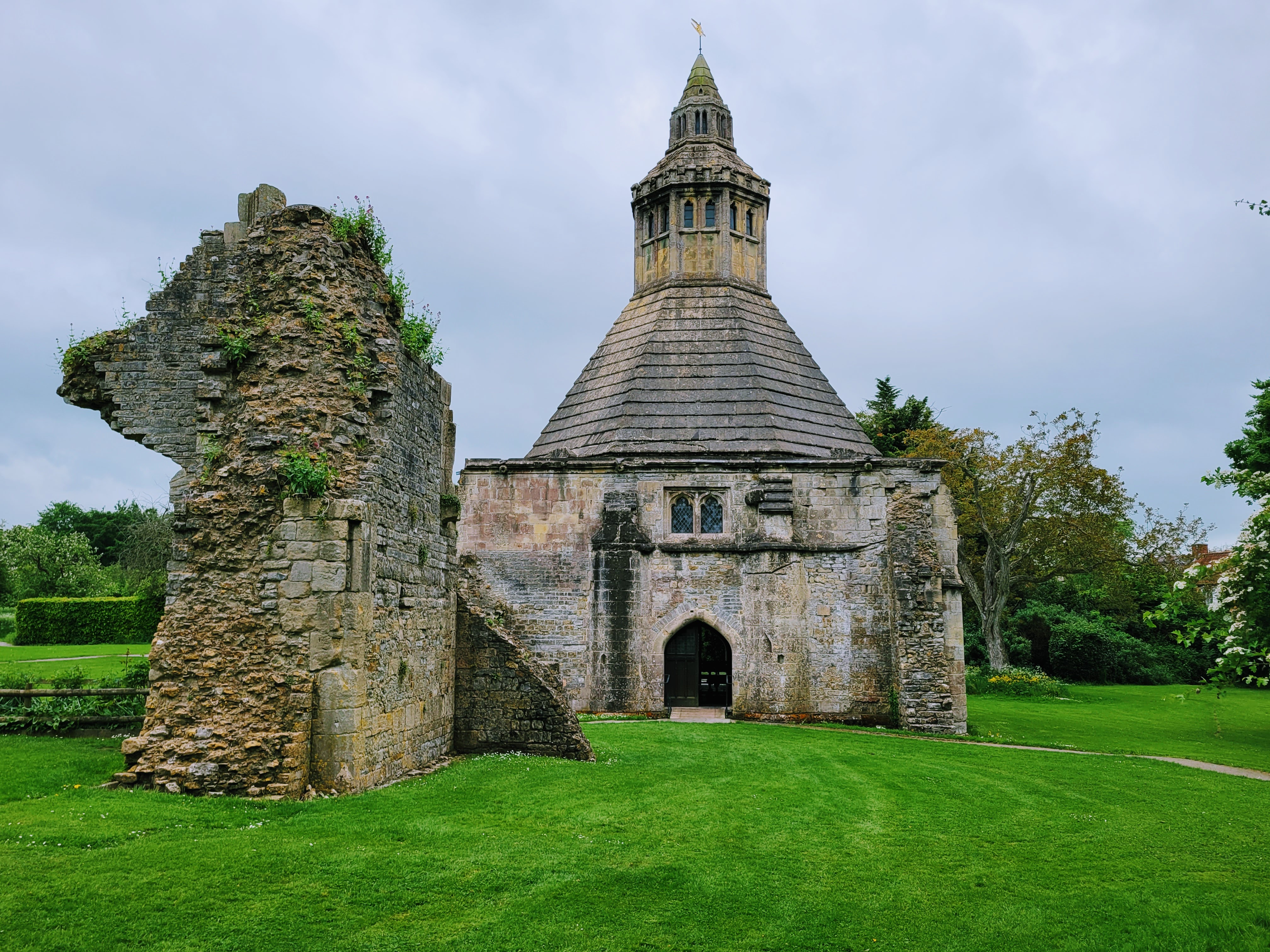 Once my new pal Ian got me to Wells, I hit the ground running to ensure I could see all the things I wanted to (and had already booked). Although only one thing during my day was booked for a specific time (more on that in a bit), I had limited time in both Wells and Glastonbury and having to wait at the station for an hour meant that I didn’t have as much time as I wanted, so I headed straight for The Bishop’s Palace (weird name, I know, since I don’t think of bishops living in palaces), which has been the home of the local Church of England bishops for over 800 years (I guess it’s called Bishop’s rather than Bishops’ because only one bishop lives there at a time?). That’s still true today for some of the space, but the majority of it is used for public functions and, of course, as a place for tourists like me to visit.