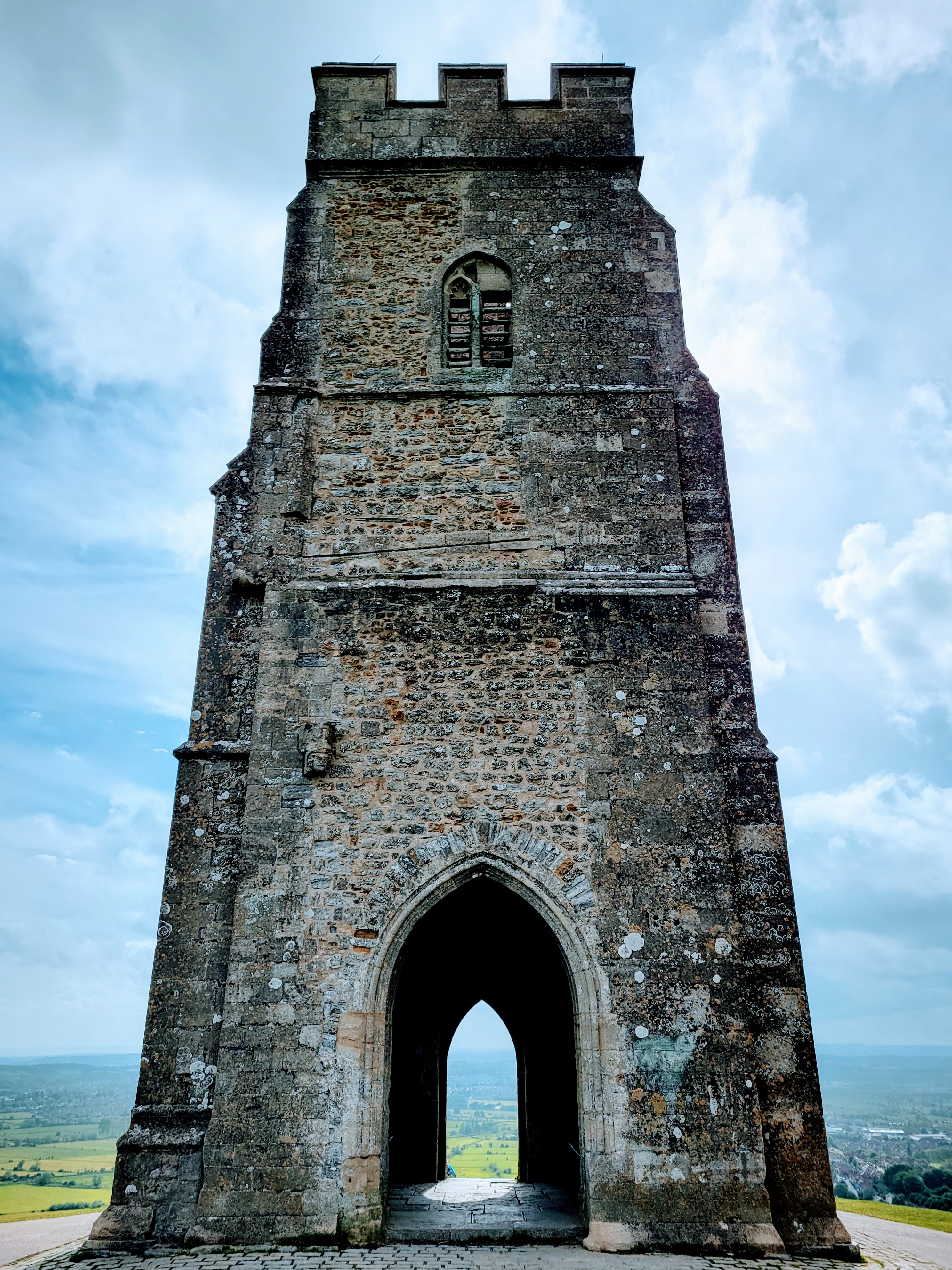 With sights seen and my hunger satiated, it was finally time to move on to Glastonbury. Hurrah! I asked at the pub about the best place to get a taxi and was told the bus station would have plenty of them, which thankfully turned out to be true. There was a taxi rank there, so I just went to the first driver in line, who happily drove me to Glastonbury, sharing all sorts of into about the area while he did so. Knowing that I had already booked a taxi from Glastonbury back to Castle Cary (I figured I may as well do that while I was sitting at the station in the morning), this was my last transportation-related hurdle to get through, so I was a happy traveler. And I was even happier as the sun kept playing a (mostly) winning battle with the clouds, which I knew would make the photos at my next stop all the better. Speaking of which…
