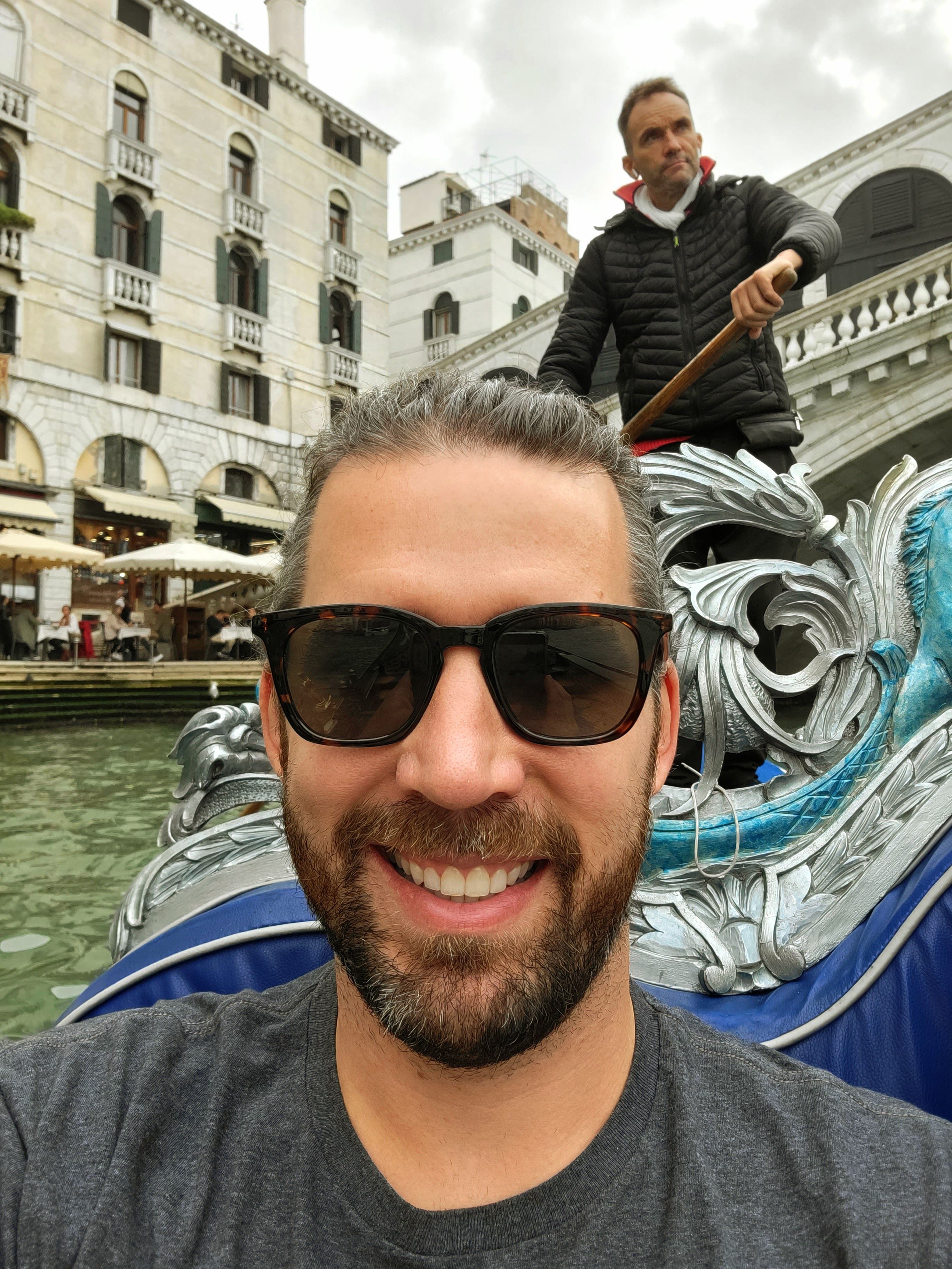 One thing the hotel staff confirmed is that gondola rides are cash only, so before stopping by the gondolier station, we hit up a nearby ATM for the required euros. Our gondolier was very no-nonsense – he confirmed the cost, took the money, and was ready to go. Boom. He was definitely the quiet type and very little to say for the duration of our SHORT ride. We went into it thinking we’d spend ~30 minutes on the ride, but it was definitely no more than 20. He literally pulled out of his gondola parking spot, took us a little ways down the Grand Canal, went down a canalley (canal + alley – get it??), pointed out one landmark, and then turned around and took us back. To say I was underwhelmed would be…unfortunately accurate. I mean, the experience of taking a gondola ride was good (again – where else are you going to do that?), but did we really pay that much money for a 20-minute ride with an almost-silent gondolier? Ugh. I do still think it’s a worthwhile experience, so you should do it when you visit Venice, but maybe there’s a way to find a more lively gondolier to make the experience more informative (and longer!)?