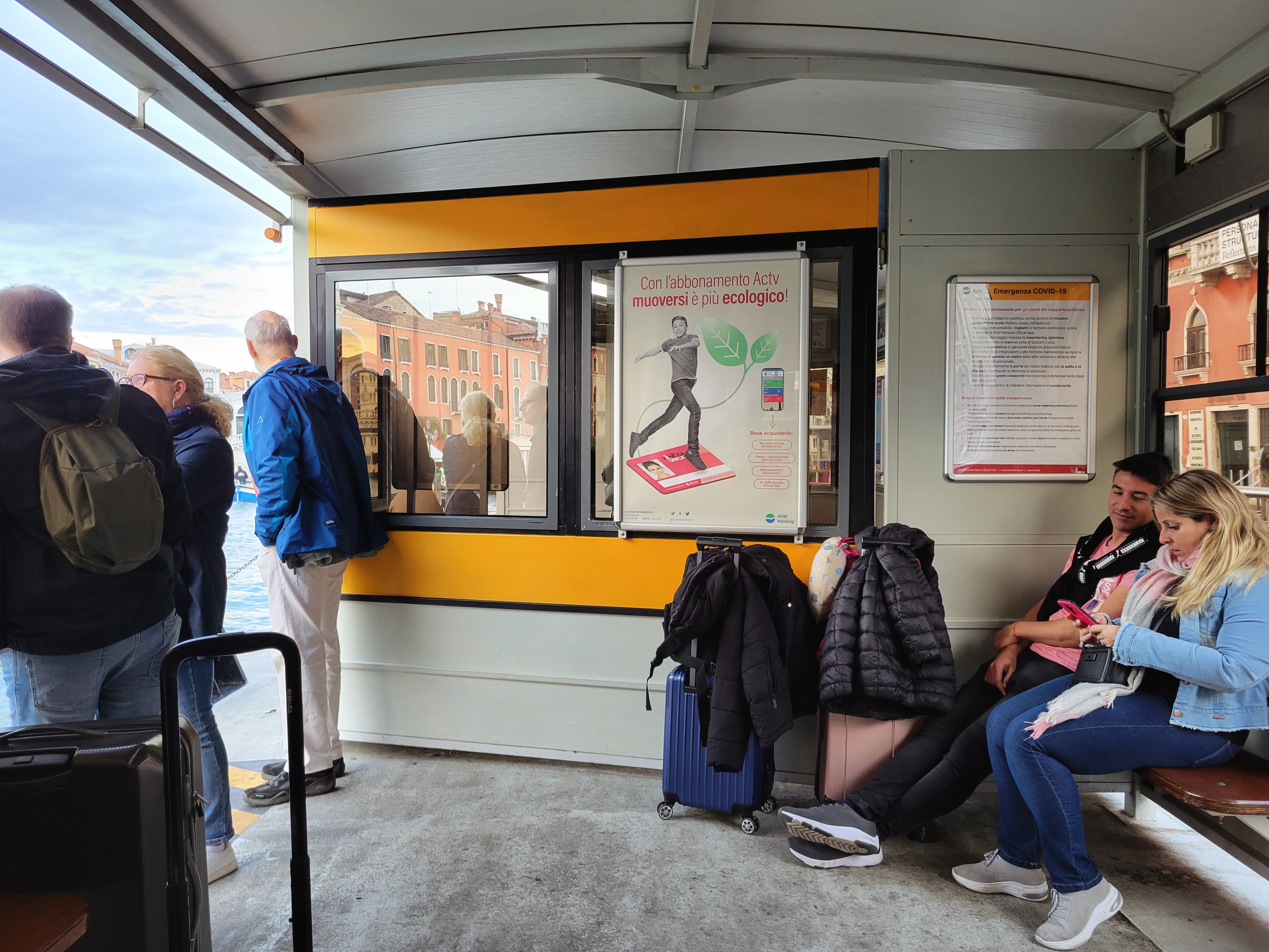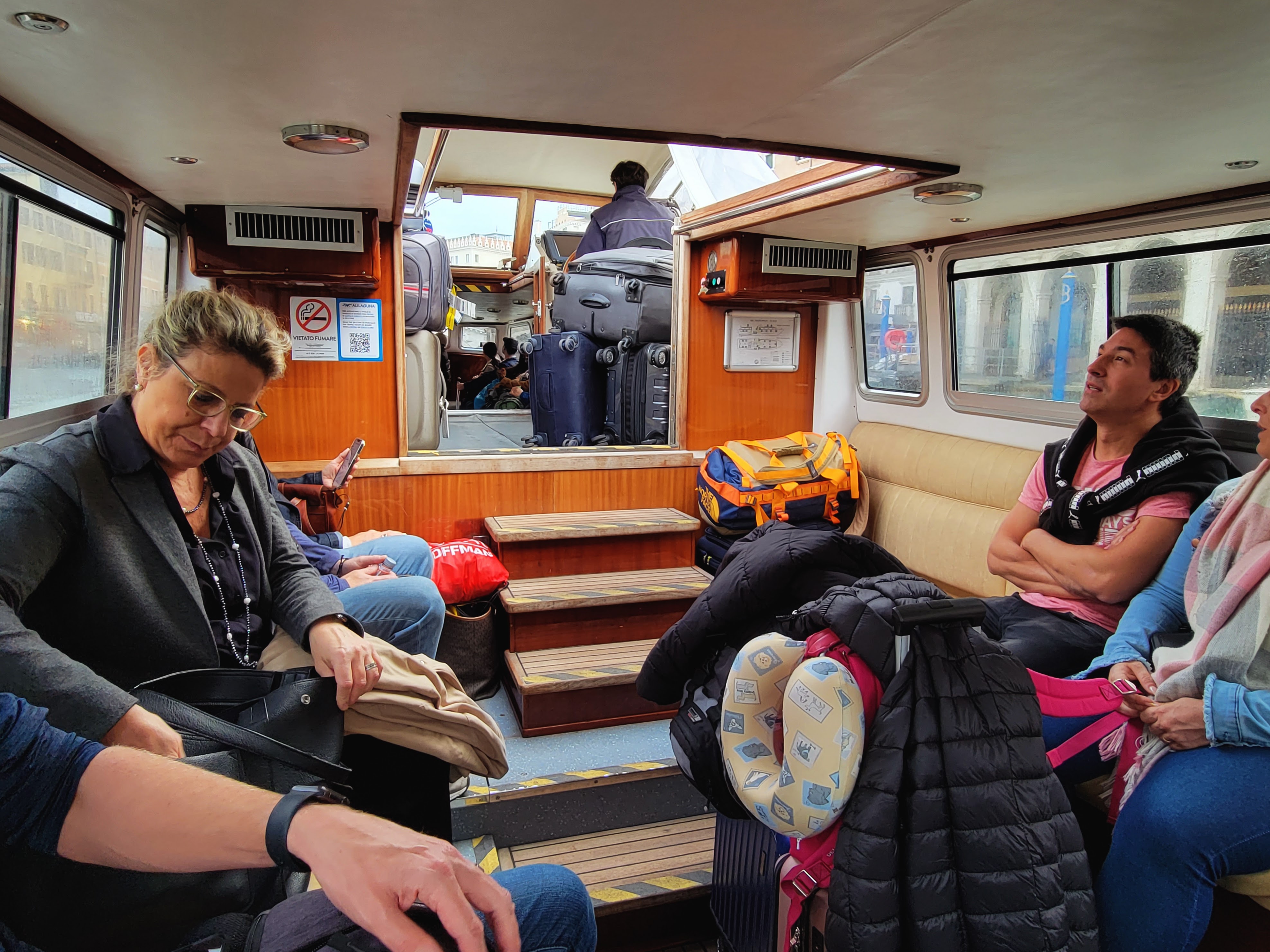 On Friday morning, we finished packing our stuff up and walked the very long distance to the spot just in front of our hotel where we could pick up tickets to take us directly to the airport. We could have booked a slightly quicker and more direct water taxi (there wouldn’t have been any other stops along the way), but it was more than double the cost of a public water taxi, so we opted to save the cash and just ride with other folks. That worked out perfectly fine – we made a couple of stops and then went directly on to the airport. It was VERY windy when we arrived at the airport (maybe normal for an airport directly on the water??) and we had to walk about ten minutes to get to our check-in desk, but it was very straightforward.