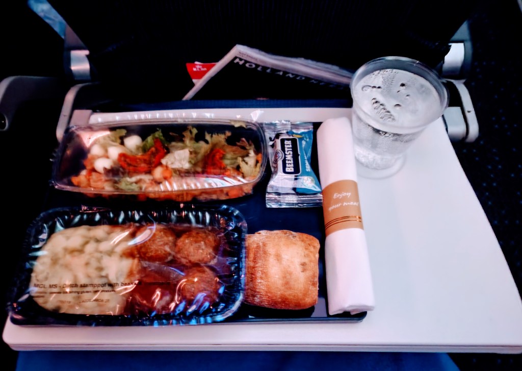 If you’ll recall, we started this trip by landing in Rome, so we hadn’t been to the airport in Venice yet, but I’d heard some negative things about it from a couple friends, so I was bracing myself for a less-than-stellar airport experience. But honestly, it was fine! Ironically, we got there too early as we reached the check-in desk nearly three hours before our departure. Despite this being the “recommended” arrival time for pretty much all international flights, we found there was no one working the KLM/Delta desk yet! So we just hung around with all the other passengers (some for our flight and some for other destinations) until the agents arrived, which was a bit boring, but once they showed up, things moved quickly and we were on our way through security, which was also a pretty quick process. And the airport proper was also fine! I’ve honestly never had a really bad airport experience (except maybe that first flight home from Cancún, when the AC in the airport wasn’t working – oof!), so I’m glad Venice didn’t provide my first one. 🙂 In fact, after we got through security, we made our way to the quite nice airport lounge (thanks, Priority Pass!) to relax and eat a bit (since we hadn’t been feeling the best, we hadn’t eaten at all yet that day, but we were getting our appetites back and were ready to get some food in us), and then made our way to our gate. Simple!