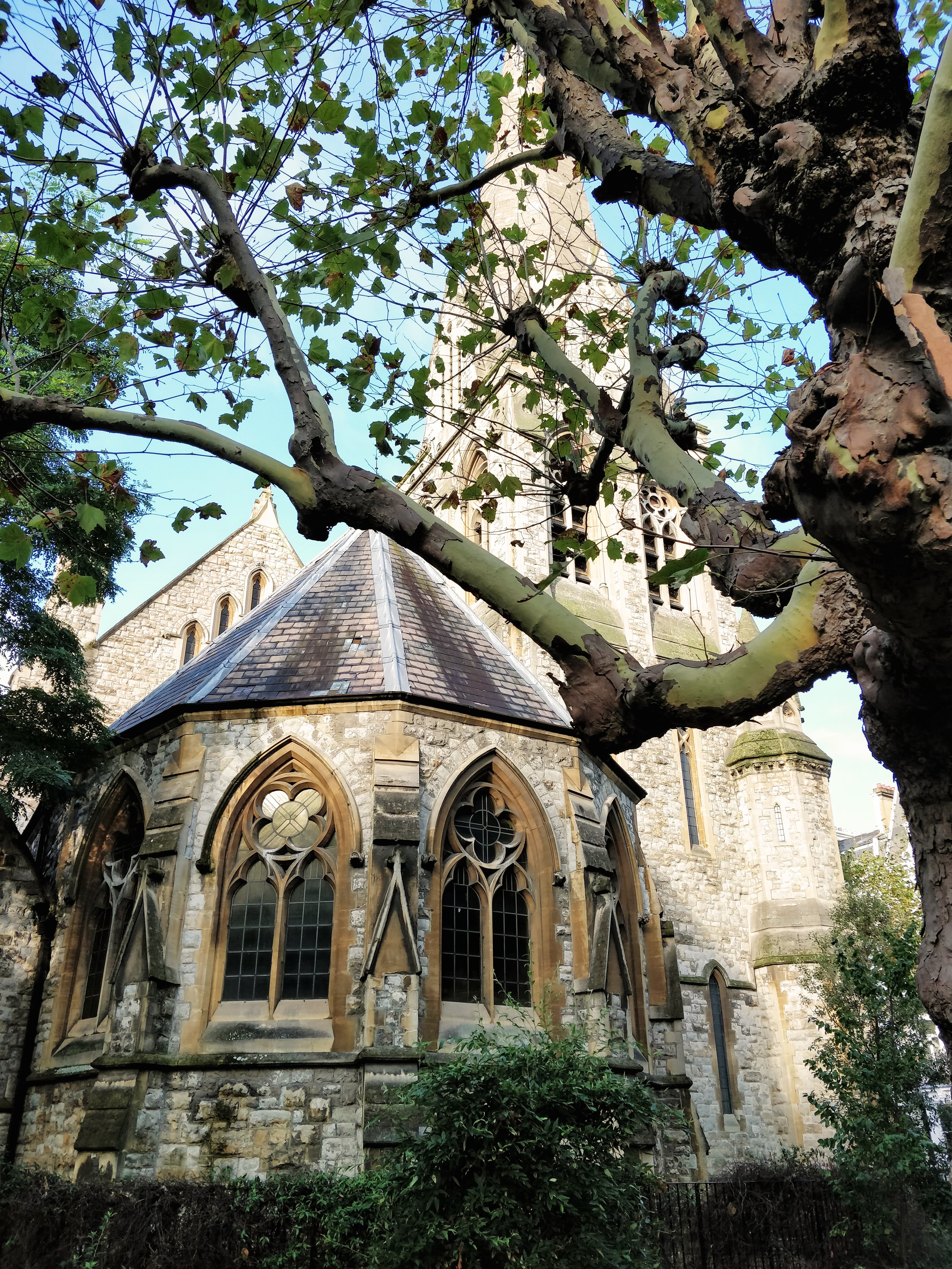 As you’ll no doubt remember from my last post, we arrived on Thursday, so I was hoping to wake in our London hotel on Friday morning feeling refreshed. I didn’t have the best first-night-in-a-new-country night of sleep, but it was pretty decent. I still felt compelled to not sleep too late though as I wanted to get a walk around the area in before having to sit on a train for a few hours. Knowing it rained the night before though, I wasn’t sure what to expect on Friday (we’re in the UK, after all), but the weather cooperated with no rain, a nice temp, and even a bit of sun. Result! Although Scott and I did some walking around Chelsea & Kensington on our first big trip together a decade ago, I’ve never spent much time wandering there since then, so I enjoyed seeing some new-to-me sights. As you can see below, there was nothing earth-shattering, but some nice churches, interesting houses, and pretty green spaces, all of which piqued my interest.