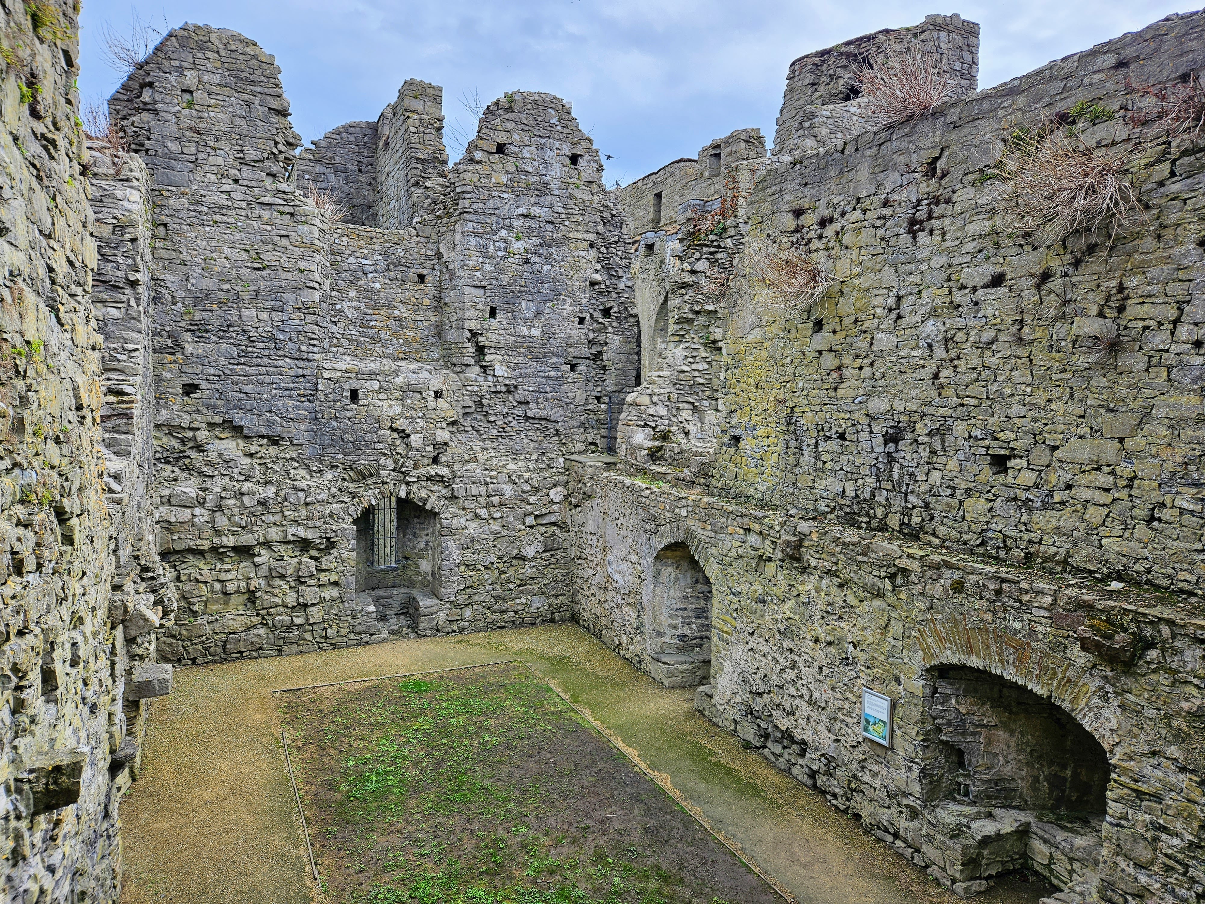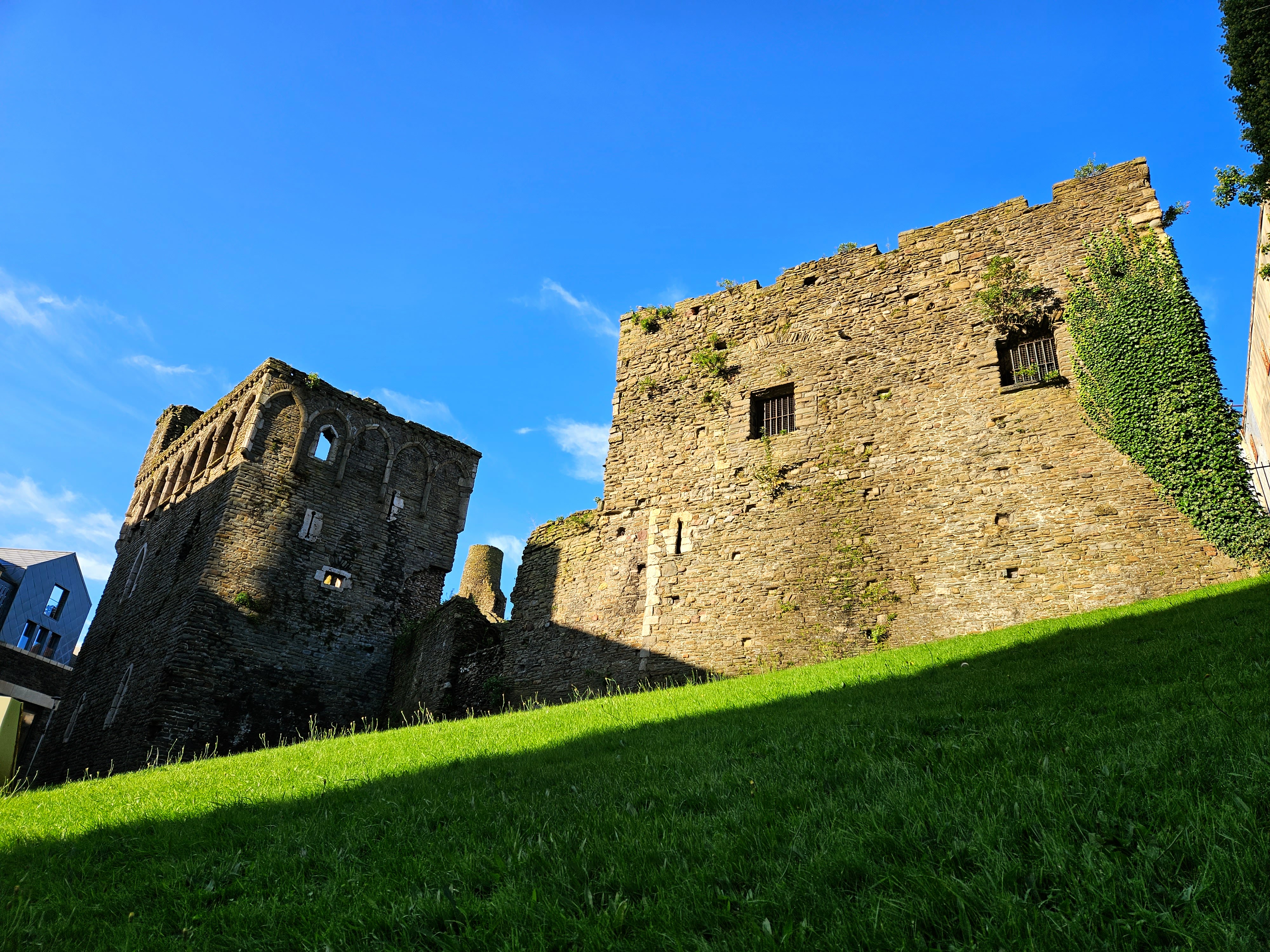 Oystermouth Castle is another ruined castle, but it’s substantially more…substantial than Swansea Castle. This one has a small entrance fee (£6, which I think is the same thing I paid on my last visit in 2006) and there’s a good amount of stuff to see and walk through, so it’s definitely worth visiting! The original building dates back to the early 1100s and was in use for a few hundred years before falling into disrepair by the Middle Ages, eventually getting some restoration work in 2010. I didn’t actually realize this until writing this post just now, but that means that the £1m in restoration done at that time was NOT done when I visited in 2006, so that was a nice bonus! Both Felicity and Matt joined me on this slightly-unplanned side excursion (Matt came from Brighton in his car, so it was especially helpful to have him with us) and I’m so glad we did it! Although the weather turned greyer while we were at the castle, it never rained and I knew the weather would be worse the next day (well, I knew the forecast told me that was likely, at least), so I was even more happy the visit worked out.