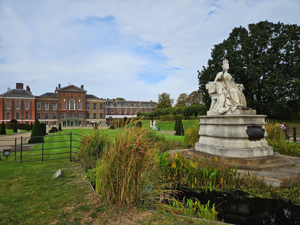 If you guessed that I started with a walk, give yourself a pat the back! The weather continued to be quite cooperative, so I once again started my day with a five-mile jaunt. I’m sure that some of you read that and wonder why anyone would get up early (not too early though) and go for a long walk on vacation, but I really do enjoy it! Not only is it what I would do at home anyway (gotta get those steps in early!), but as I’ve said before, one of my favorite things to do in London is to just BE in it. I really do soak up a ton of positive energy from being in my favorite city and walks are a great way for me to do that, so I’m always extra appreciative when the weather makes that easy to do. I even got to wear shorts! And after yesterday’s realization that I was very close to Hyde Park, I knew exactly where to walk, though I turned in a different direction at the park and instead did most of my wandering through Kensington Gardens, which is right next to the park. In fact, it used to be part of Hyde Park, until it was annexed to become the private gardens of Kensington Palace (which you can see below). As with Hyde Park, there are nice, wide paths to walk on throughout, which makes a morning walk that much nicer. And did I mention that there are SO many off-leash dogs to smile at, too?? I saw multiple people walking their dogs on leashes who then let those puppers run free once they enter the park. And the doggos all behave so well! Some run around and some stick close to their owners, while others run wildly, looking up trees or playing with balls. And they all seem to play nicely with each other as I didn’t see any snapping or fighting amongst them. Well done, canine friends!