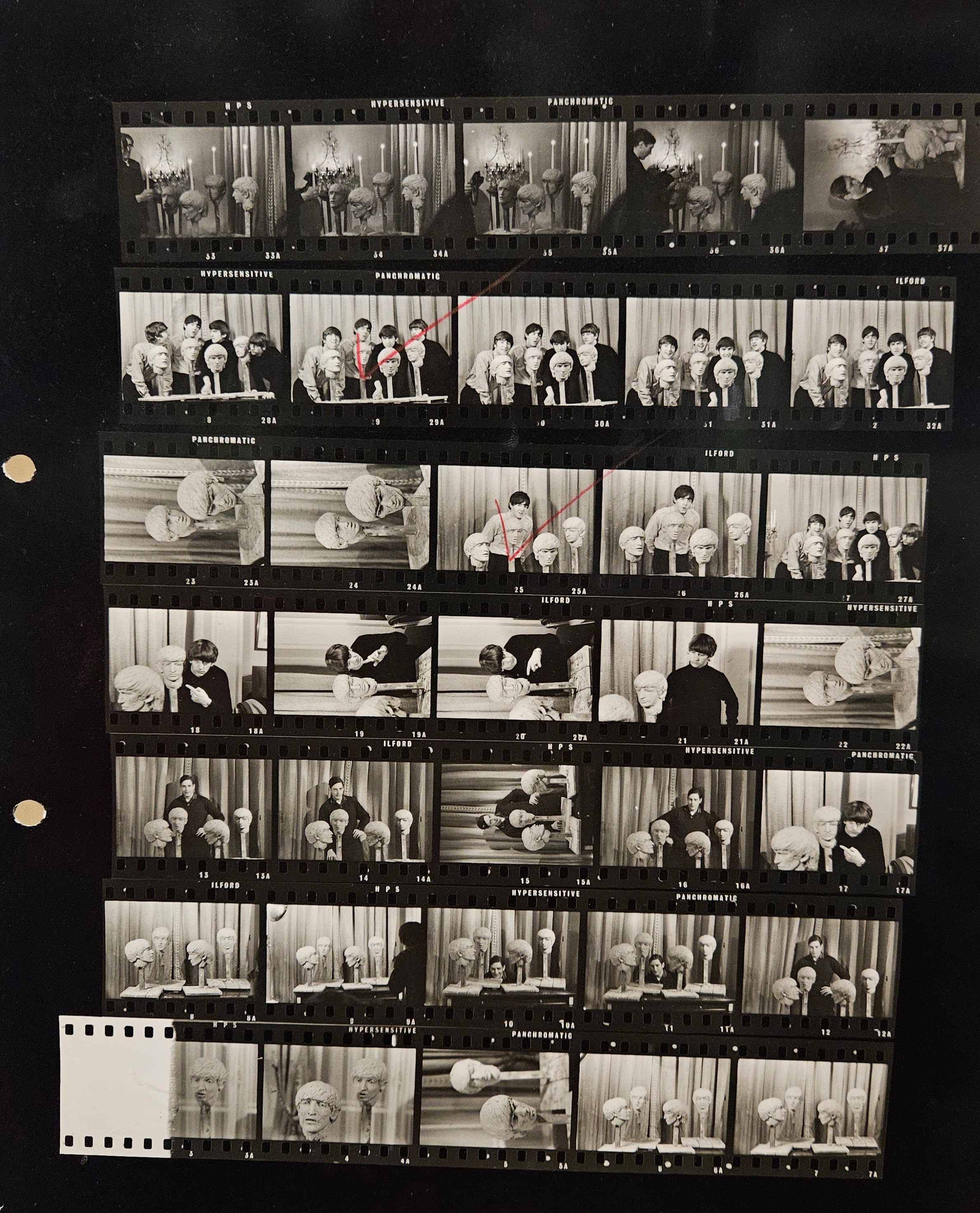 Examples of contact sheets that some photos in the exhibit were pulled from (only where negatives didn’t still exist).