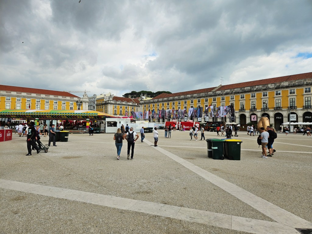 With a satisfying breakfast down the hatch, we actually chilled in the room for a bit more and then worked on our plan for the day. Mostly, that plan was to head to the BelĆ©m neighborhood of the city to explore and check out some interesting sites. In our conversation with the person who checked us in at the hotel, we heard that BelĆ©m is an area of the city that we needed to check out. Of course, she said we would take a train to get there, but in looking it up on Google, we realized it was only a little over four miles away, so we figured we’d get our walk in by hoofing it there. The weather was quite cooperative (it felt fairly warm by the time we arrived) and we actually started our trek with a detour to the PraƧa do ComĆ©rcio (Commerce Plaza) shortly after we left the hotel. It’s right by the river and we knew we could follow the river pretty much all the way to BelĆ©m anyway, so it made sense to walk through it for a few minutes to take some photos. The results are below!