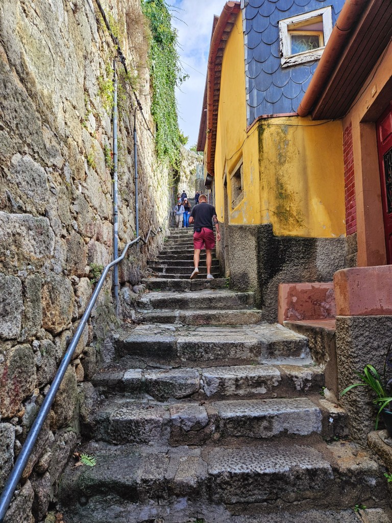 With a good meal in my tummy, we (well, mostly Scott) pulled together a game plan of what to see and do. Despite the forecast, the weather wasn’t rainy yet (though it was mostly cloudy and it had clearly rained earlier in the morning), so we hit the ground running to see whatever we could. Well, I say “running” but I actually mean climbing and stair-stepping as that’s what it took to up from our hotel to what we wanted to see. People weren’t lying about the hilly nature of Porto, that’s for sure! I feel like we experienced the most hills (well, climbing stairs – plenty of them) on the way to our first stop. As always, I grabbed a few photos of that journey, which you can see below.