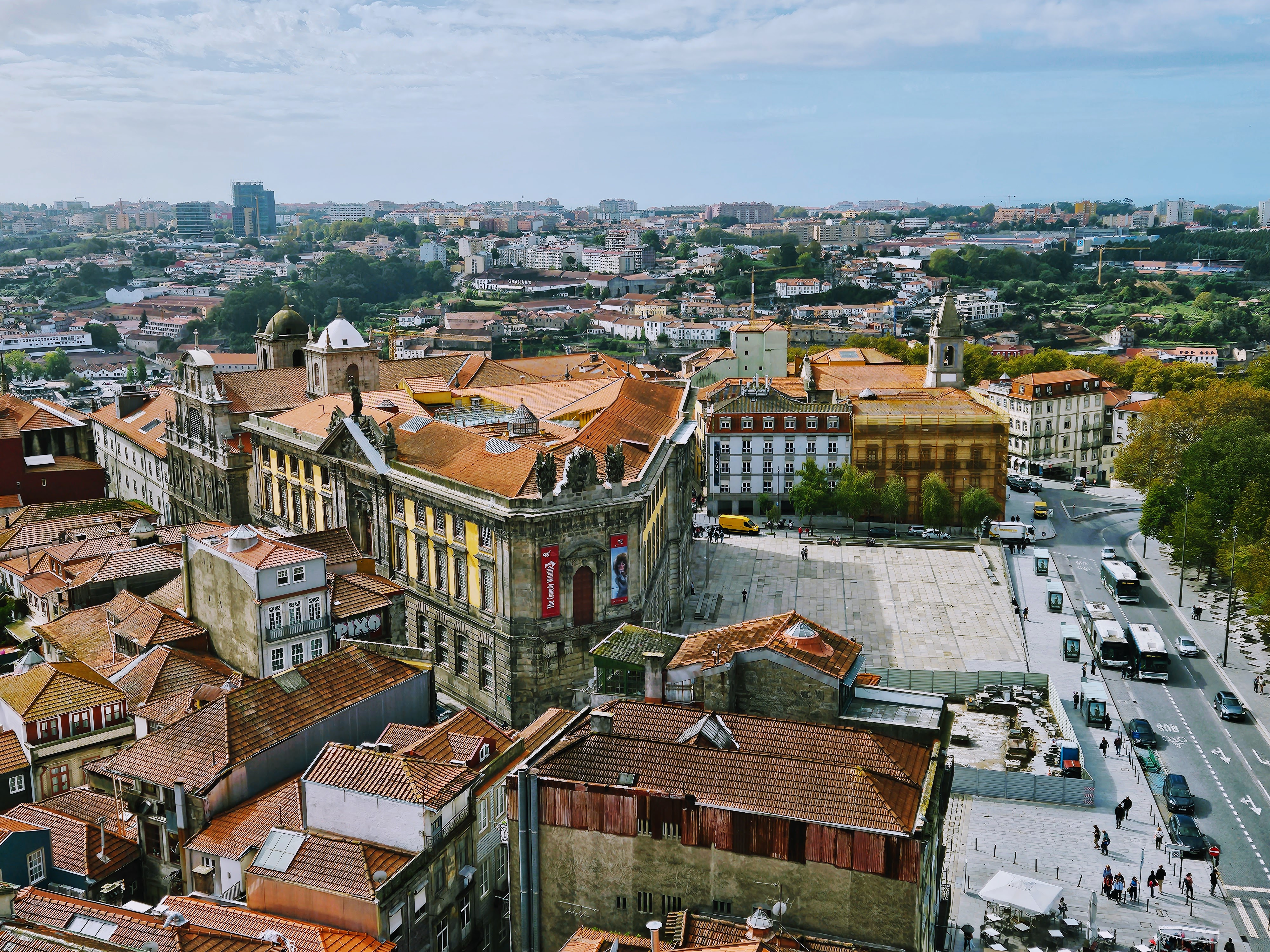 We continued to enjoy the sun (and lack of rain) as we made our way to the next destination, which you’ve actually already seen in the background of some of the photos above. The Torre dos ClΓ©rigos (ClΓ©rigos Tower) is another viewpoint, one with 220+ steps to get to the stop. This was another church stop, as the tower is part of ClΓ©rigos Church and we did walk through it because our β¬8 ticket included access to both, but the view from 75 meters up is what we were really after. We only had to walk ~15 minutes to get there (though it looked further from the cathedral), but we were rerouted slightly due to the construction for the new subway line that’s happening in the city center, but we didn’t have any issues reaching our destination. We had already purchased our time slot-specific tickets online, but we did still have to go to the ticket counter to show them that online order so they could give us paper tickets, which were then scanned to get us into the first part of the experience (the church’s museum) and were also checked a second time to get access to the tower.