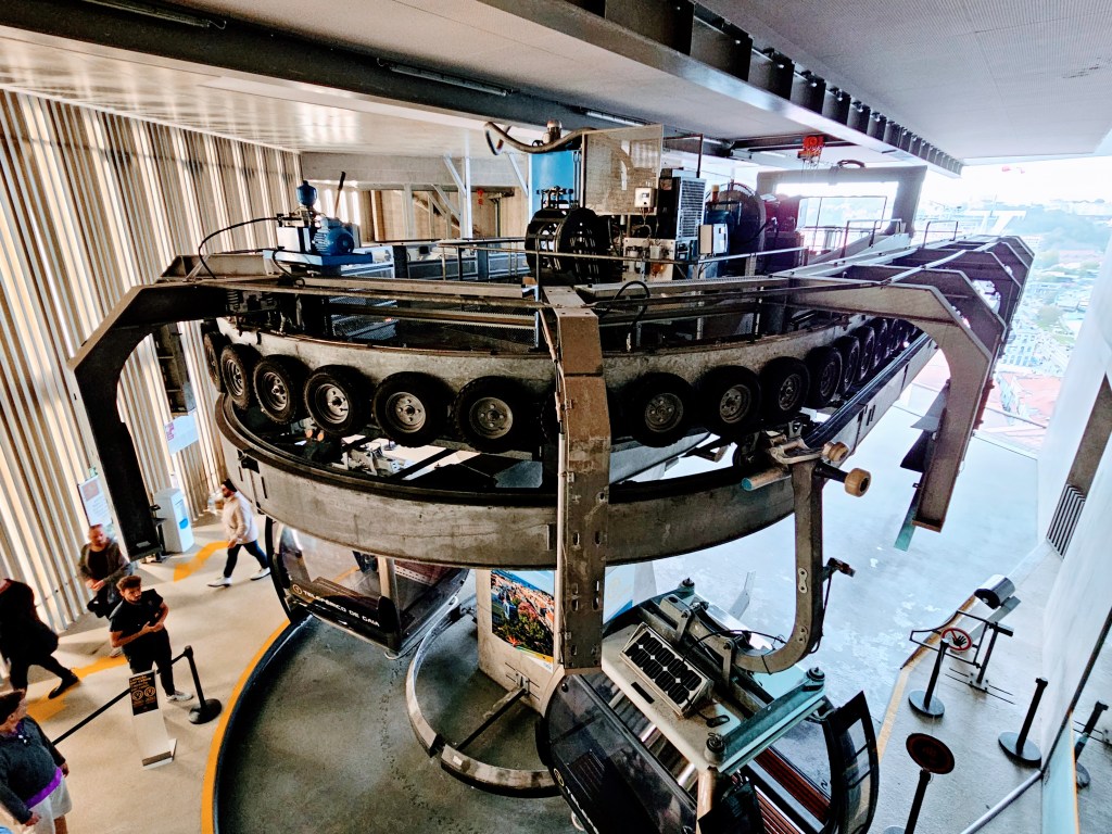 As we were walking on the bridge, we got a closer look at the TelefΓ©rico de Gaia (the cable car we spotted when we first got to our hotel). Although we didn’t have tickets and weren’t necessarily planning to ride it, our walk across the bridge took us just about to the entrance to it, so we decided to keep taking advantage of the nice weather and taking a short ride. We opted to just buy one-way tickets for β¬7 each because we learned the trip isn’t very long anyway (less than a half-mile, I think), so we thought it would be nice to take the one-way trip down and then walk back using the path underneath the bridge, which would then get us back to our hotel. Perfect!