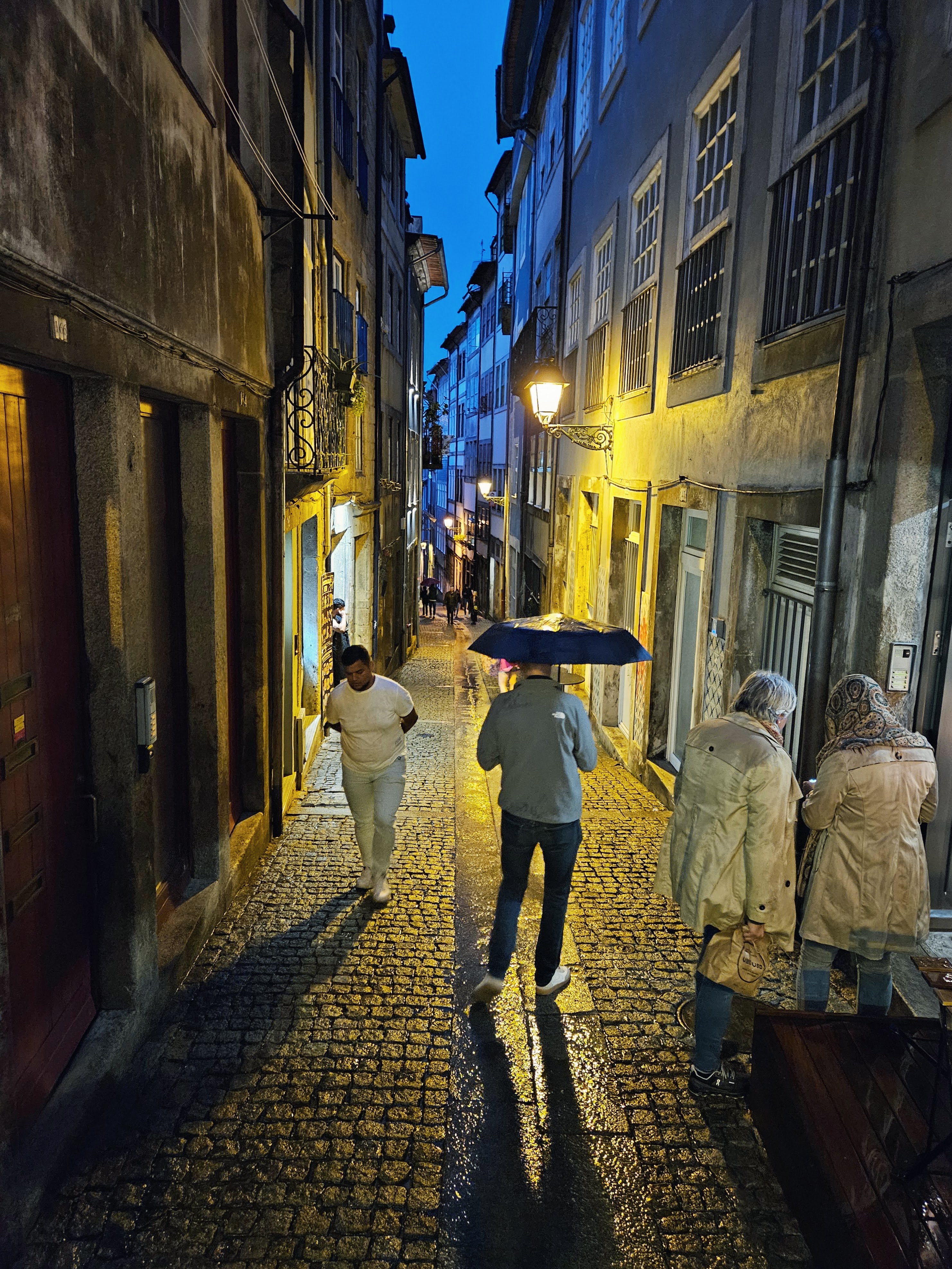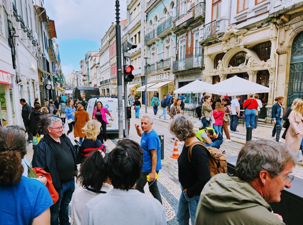 We were sitting in a room in the same building as C’alma, tucked away at the back. In the left photo, our guide is on the phone with the tour company to clear up the attendee issues. On the right, he’s sorted that out and is educating us on the history of Porto. The couple in the left side were visiting from Germany, but the husband had spent a lot of time in the US because he was really into bluegrass music. He said not many German people are even aware of it!