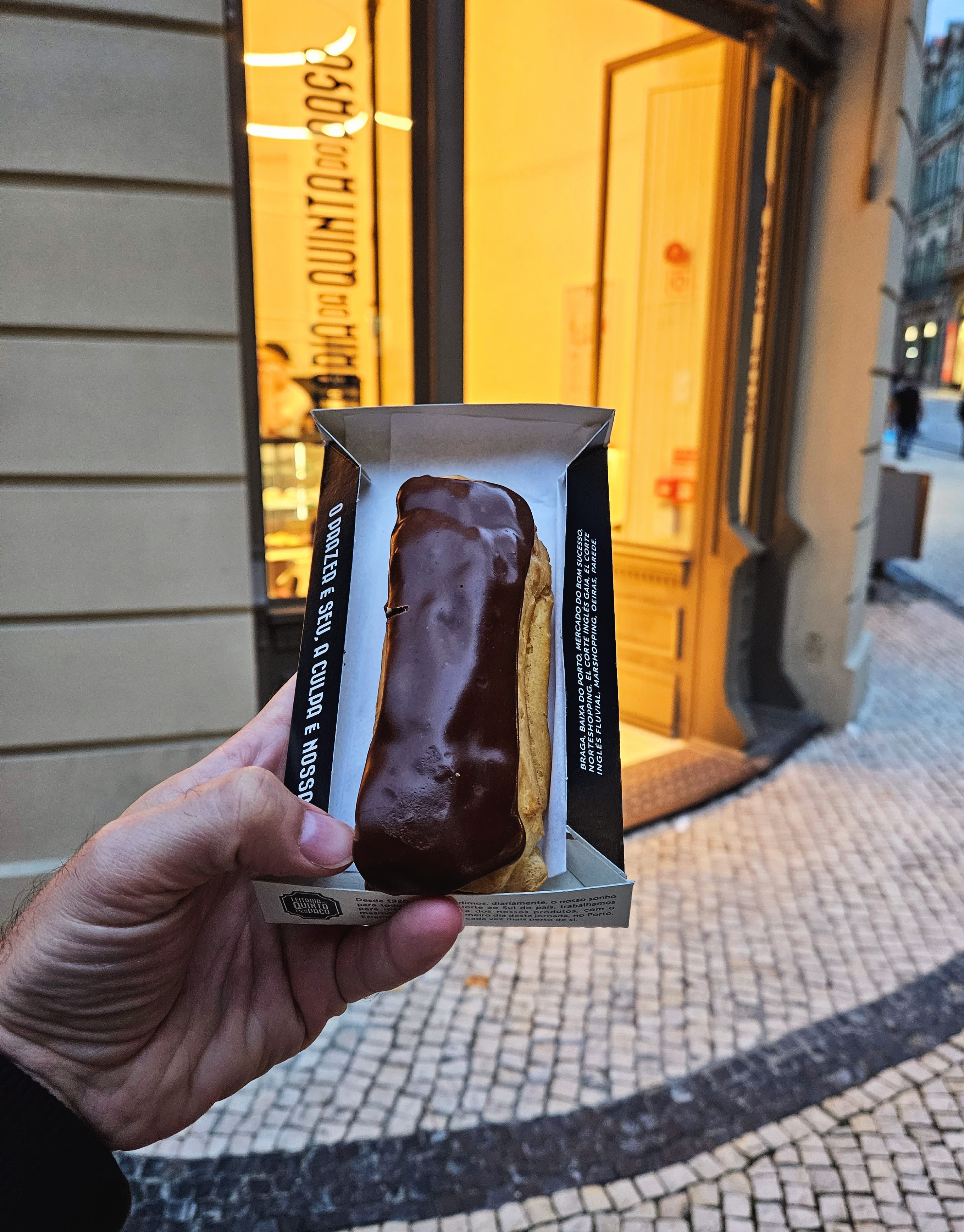 As if we hadn’t eaten enough (hey, it wasn’t actually THAT much food, plus we did a lot of walking), we made one more food stop on our way back to the hotel, this time at Leitaria da Quinta do Paço. They had some tasty-looking eclairs and it would have been rude to not buy one, so we did. 🙂