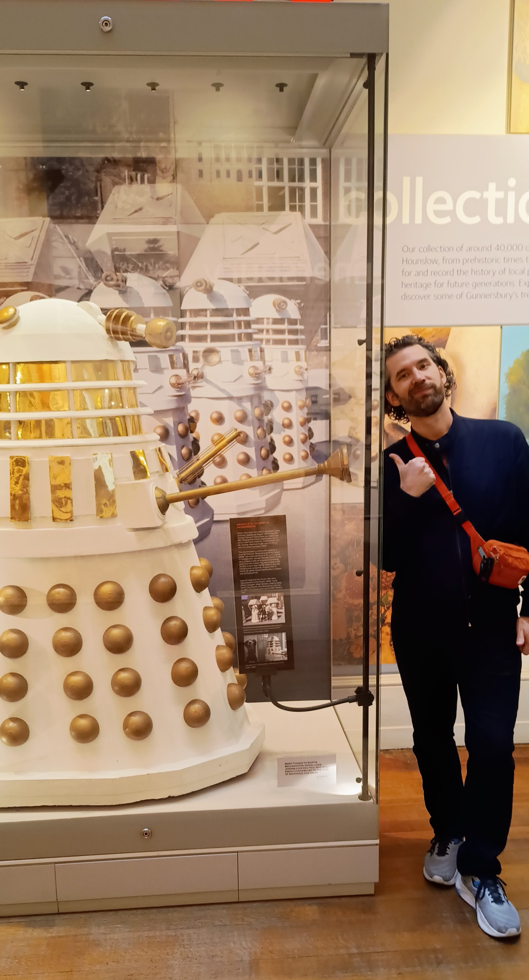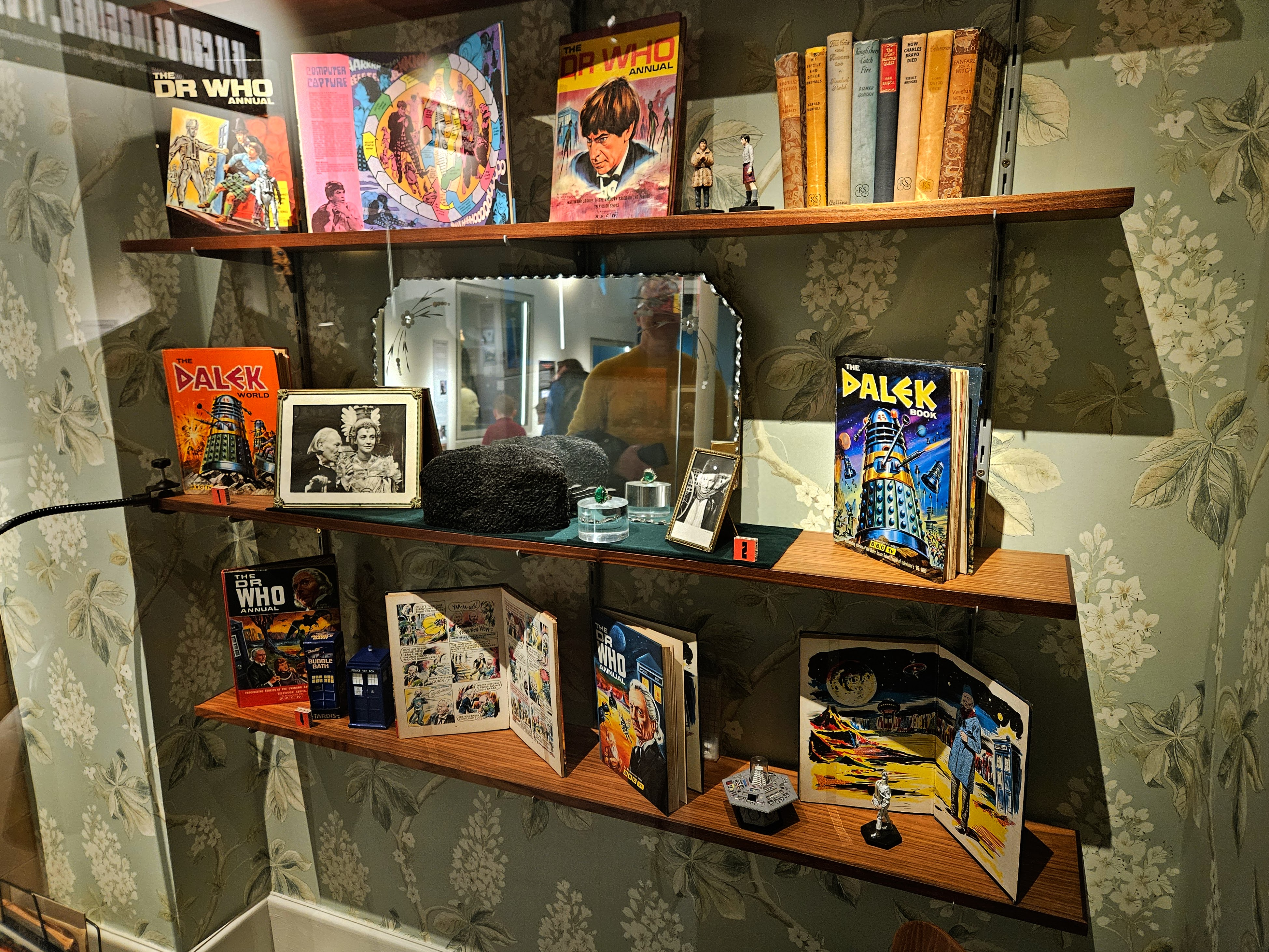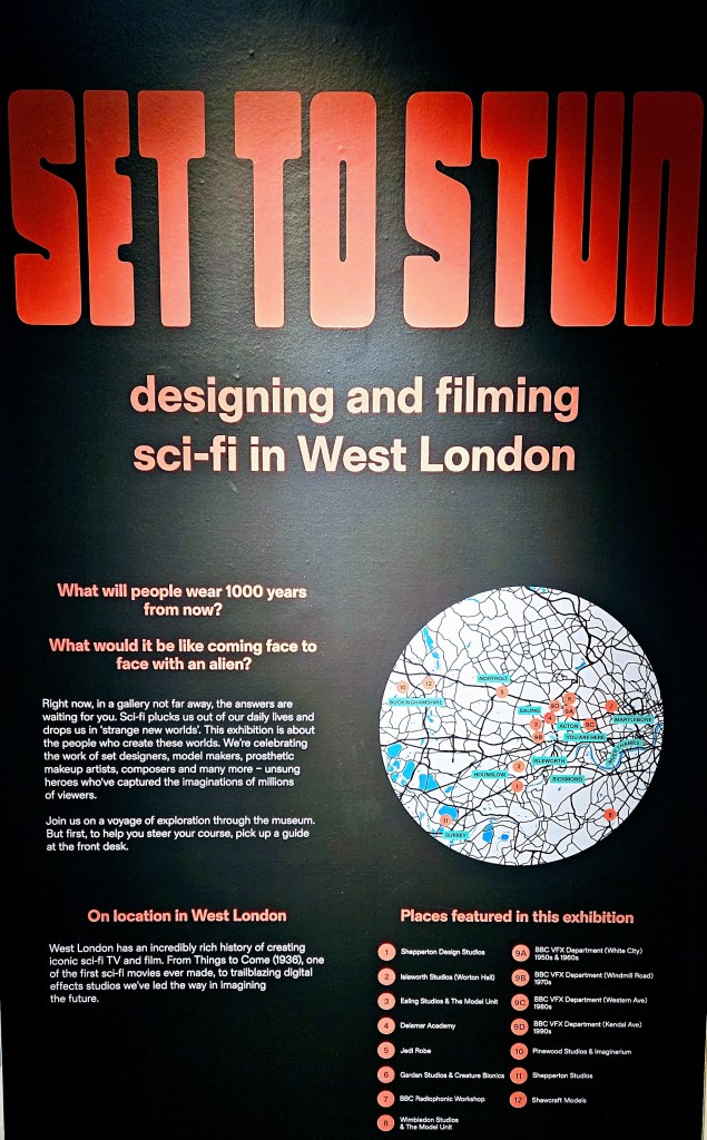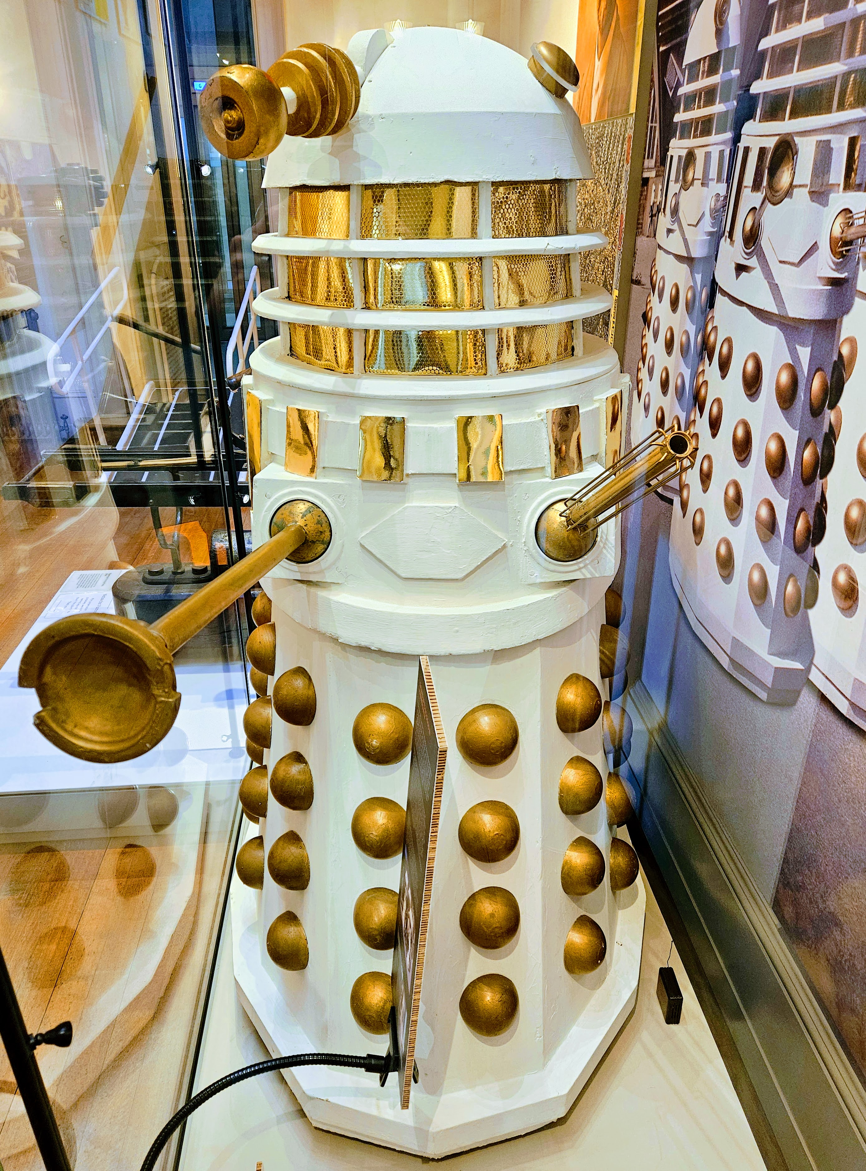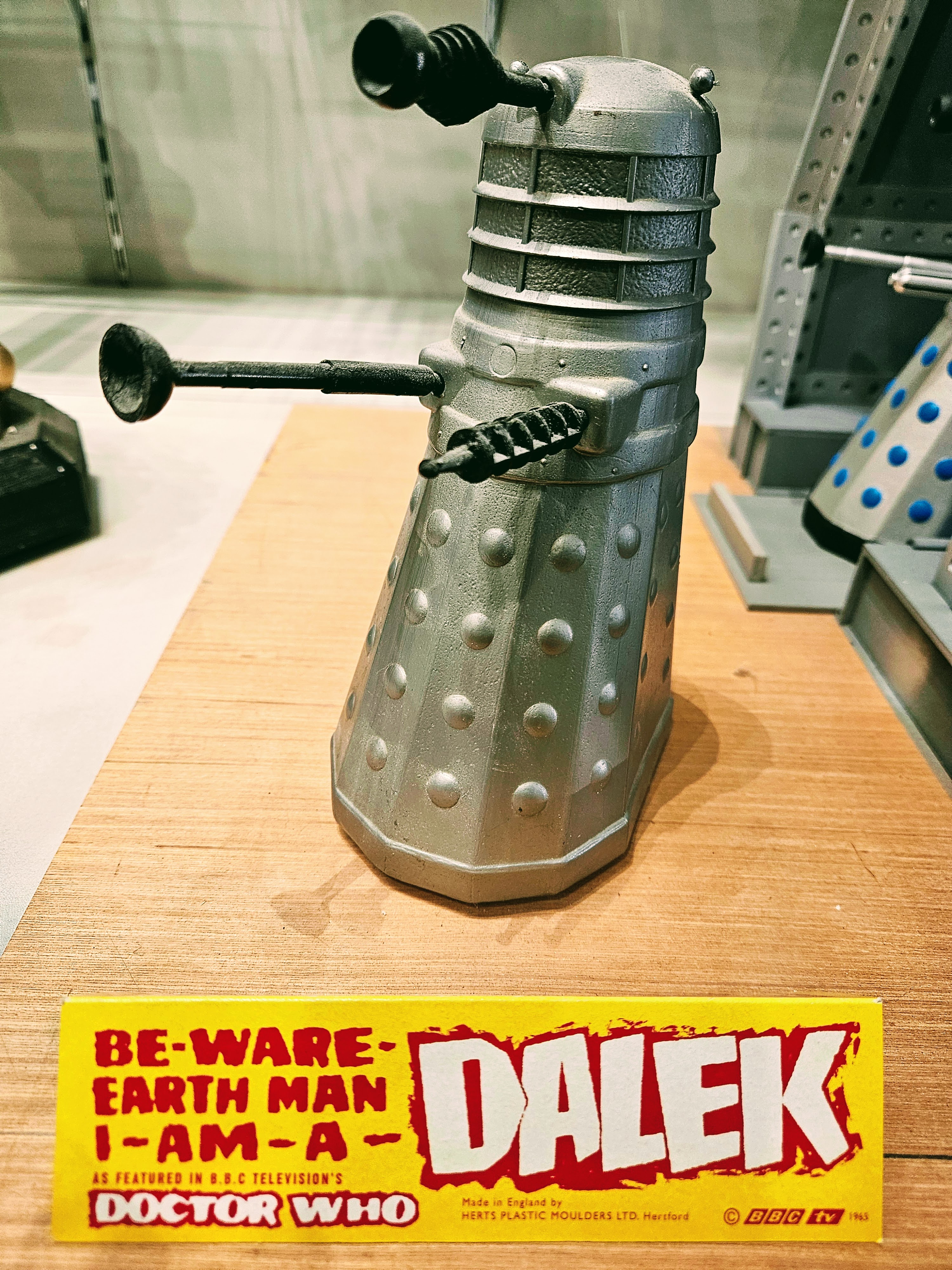 Truth be told, there isn’t actually a huge amount of stuff to see in the museum, either in Set to Stun or in the building overall. But as a piece of architecture, it’s interesting, plus the park is great for walking around in nice weather (there were tons of people visiting with their dogs while we were there). I think the building would be a lot more interesting to tour with a guide who could tell you more about the history, etc., but as it is, we still enjoyed our visit. And as an added bonus, both the museum and Set to Stun are free! With a name like Set to Stun, you might have guessed that this particular exhibit is a bit geeky, and you’d be right as it’s all about filming and designing sci-fi content in the local area. As Doctor Who fans, we were happy to see some good Who content, though there’s also stuff from Red Dwarf, Star Cops, and other TV shows and films. There’s also some neat toys and historical stuff to see throughout the museum, so it’s somewhat eclectic. I know we both found it interesting! Check out the pictures and see what you think.