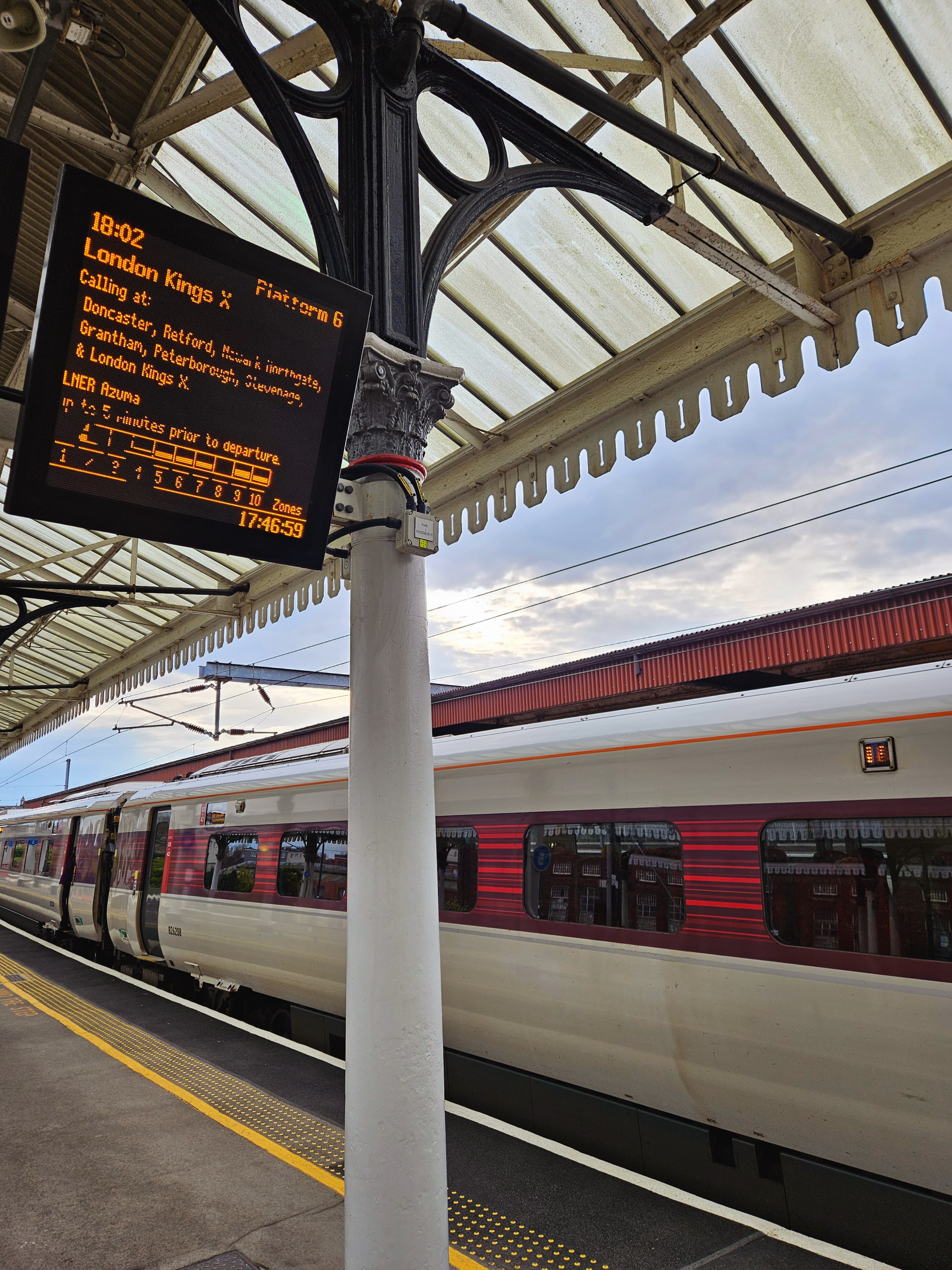 I woke up a bit before my 6:30 AM alarm (ugh, but could have been worse!) and got ready in plenty of time to get out the door to catch the train from Shoreditch High Street (I was again happy to have such a variety of stations to choose from, since the weather was a bit rainy). Within 20 minutes, I was at King’s Cross with a bit of time to kill before my platform was announced, so I wandered the station for a bit and picked up a little snacky to have on the train and throughout the day. I settled in to a moderately comfortable seat and had a nice ride while I listened to some music and podcasts and watched the world go by out the window.