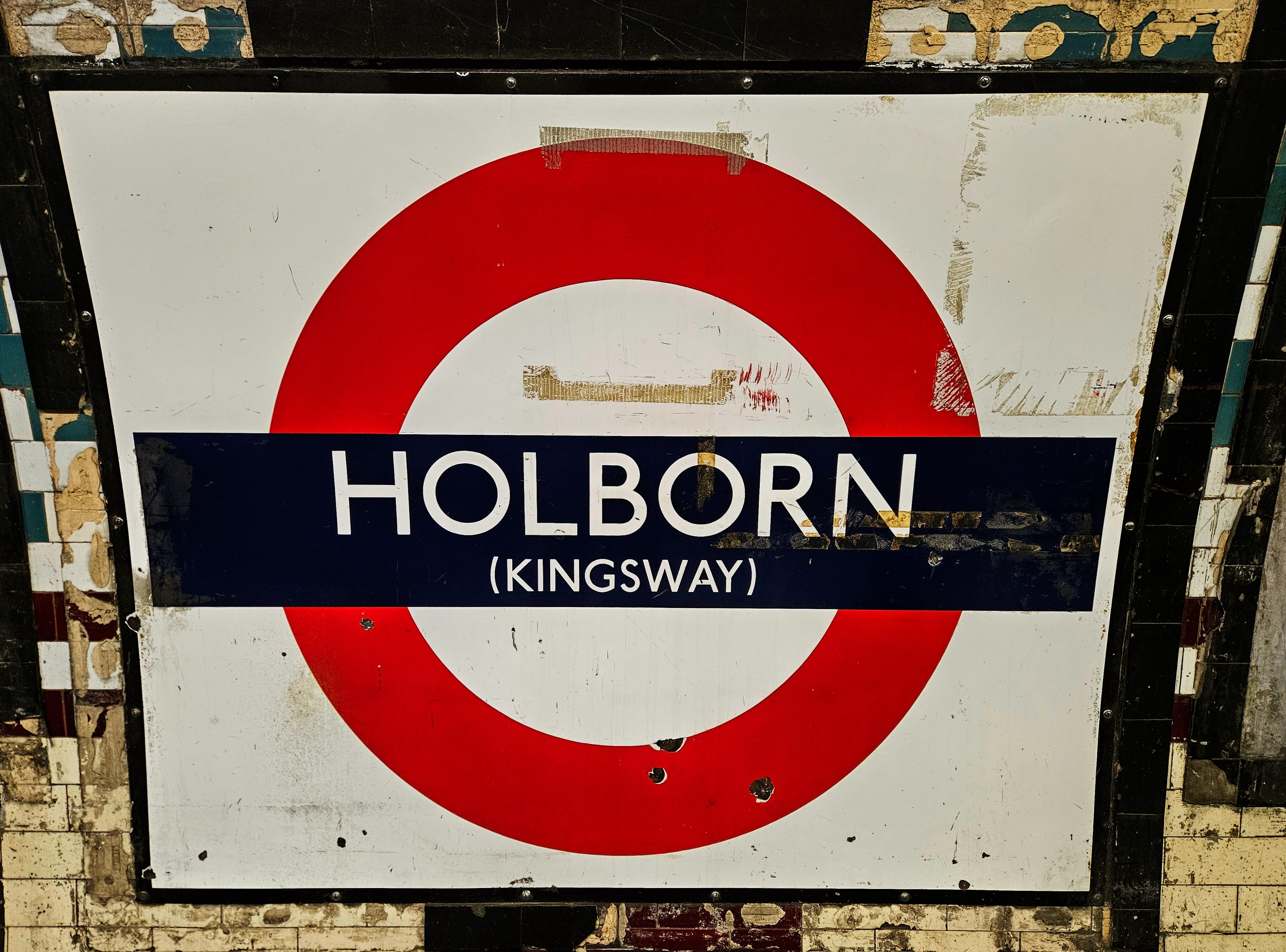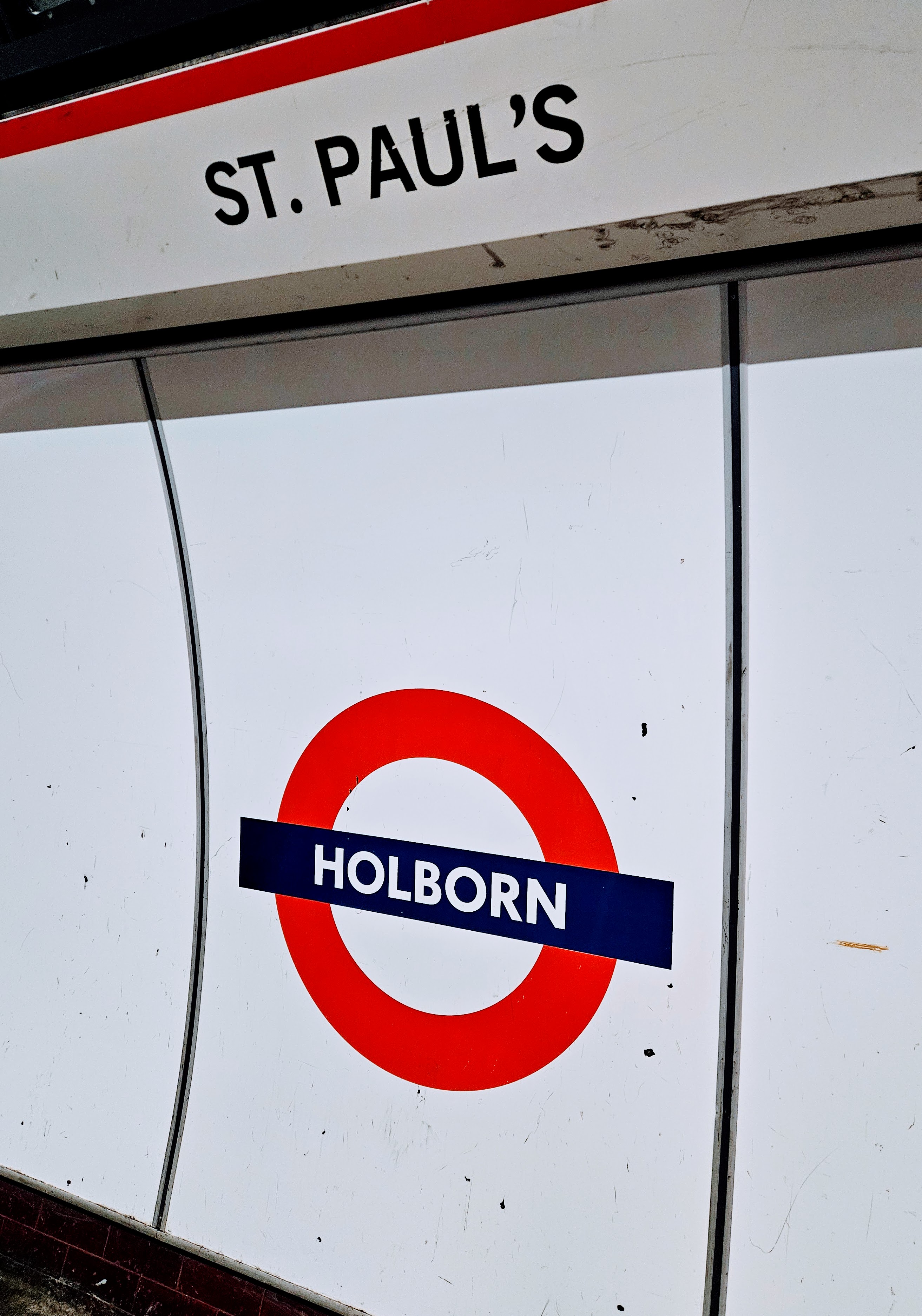 These are cool! On the left, it’s neat to see an older Holborn roundel that includes Kingsway (which helped travelers confirm where they were). On the right, it’s just odd to see two station names together like that!