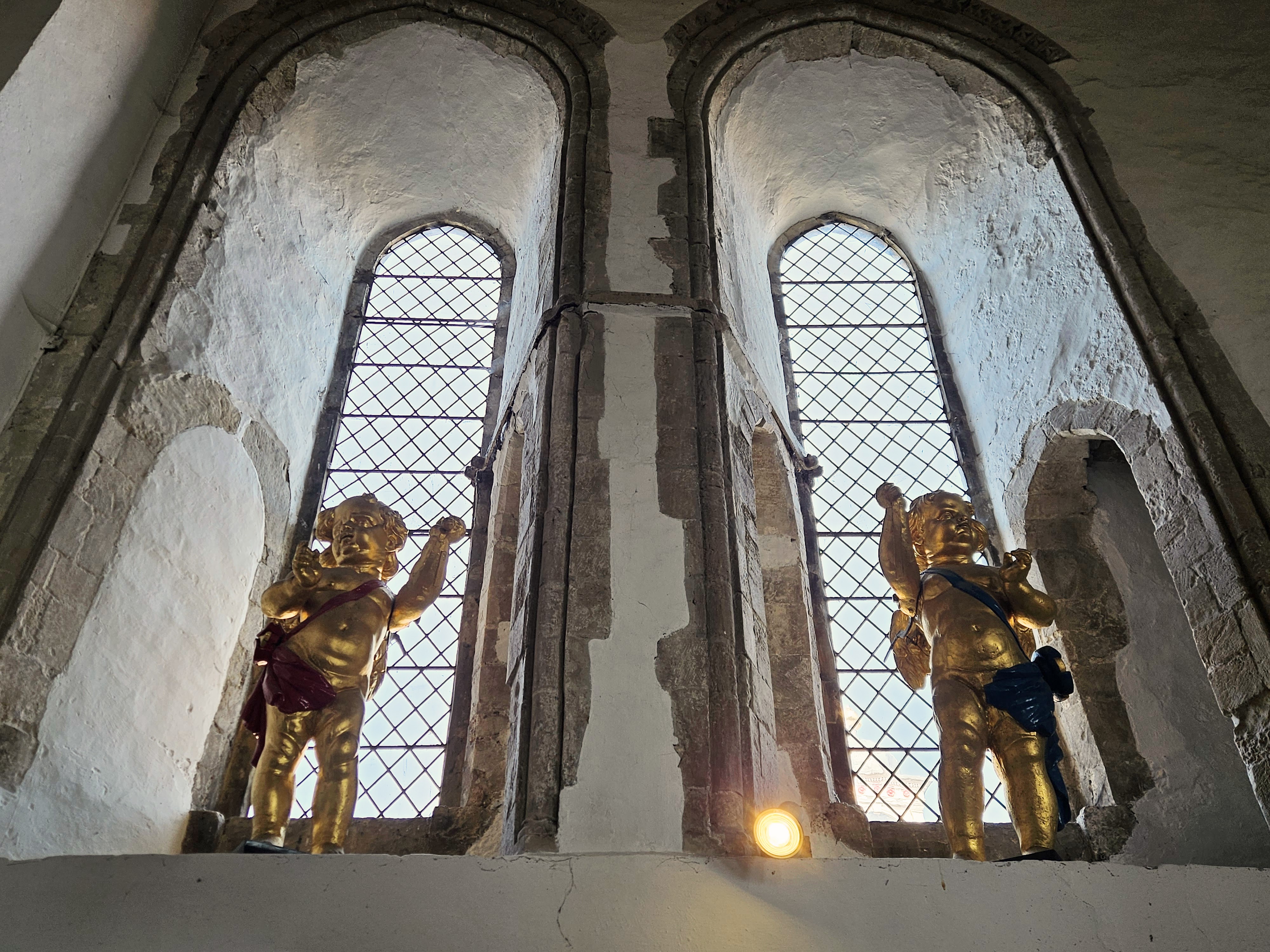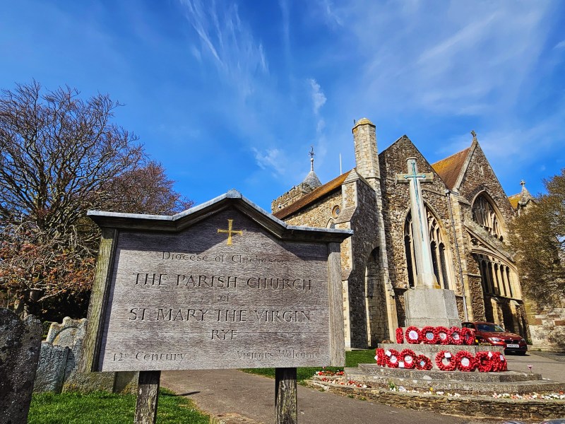 With ice cream consumed, it was time to do some exploring. We didn’t have to go far though – back up the street we came down, walking past the Mermaid and around the corner to reach our first stop, St. Mary-the-Virgin. Like many churches in the UK, it’s hundreds of years old (it was originally built in the mid-late 1100s, though it’s been changed/repaired/updated many times since then), photographs well, and has a tower you can climb to see some lovely views. All of that added up to a nice experience for us both! While you can enter the church for free, it does cost £5 to climb the tower, which seemed perfectly reasonable (in this economy?!). The climb is a mix of a spiral staircase, a narrow hallway, and some steep, ladder-like stairs, though none of them are an obscene number to walk up. Be aware of that if you intend to climb up, but be equally aware the views at the top are really lovely, especially on a nice, sunny day. Check them out below and see what you think!