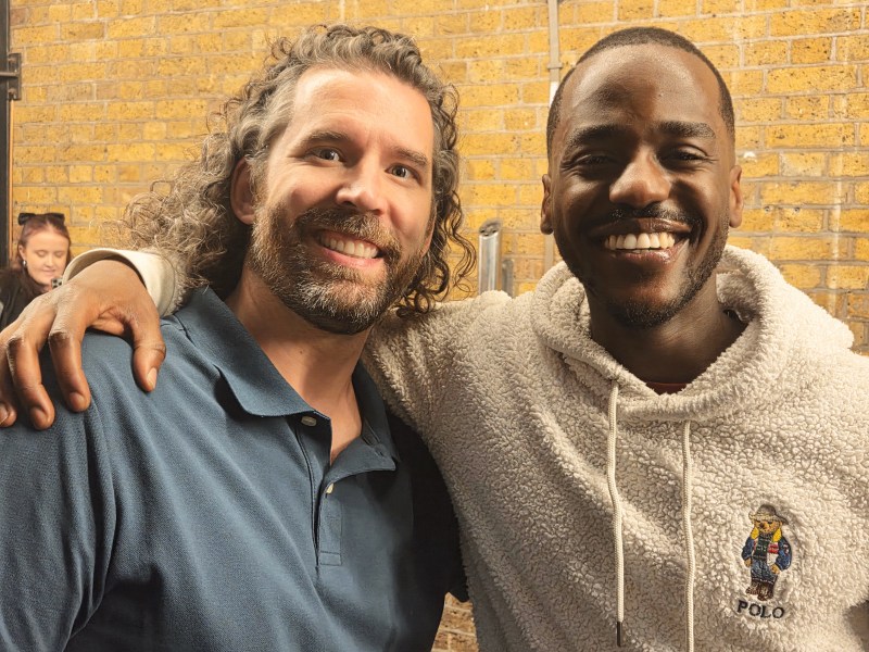 I’m certain Felicity was beyond ready for bed by the time the show ended, but she indulged my suggestion of “stage-dooring” to see if we could meet and get a photo with Ncuti. The process is in the name – go to the theatre’s stage door after the show ends and see if any of the cast will come out and meet with patrons, sign autographs, take photos, etc. Although neither of us had done this at any other show, we’d heard that Ncuti had been doing it for this show, so we figured it would be worth trying (a US friend saw the show earlier this summer and was able to say hi and get a photo with him, which is what prompted us to try). It was a really smooth process! We only had to wait for about ten minutes before he showed up and then he met with maybe 10-15 people before getting to us, so the whole process took about 20 minutes at most. He was super nice with everyone and happily signed programs and took photos with folks who wanted them. After enjoying him in Doctor Who and in the play, it was really cool to say hi! Not sure if either of us will have another stage door experience at other shows, but at least we know how smoothly it can go!