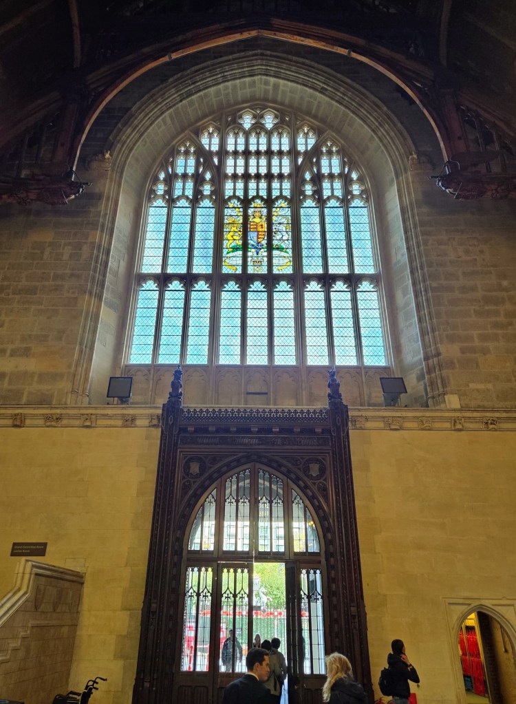 On our final day of this trip (well, it was actually only MY last day as Felicity stayed a day longer than me), we just had one thing planned – a tour of Parliament! It’s funny that in all my trips to London and in all the times I’ve walked by the building (“Hey, look kids – there’s Big Ben! And there’s Parliament!”), I’ve never taken the time to actually go INSIDE the building for a tour. I’ve thought about it before, but I guess neither me nor the various people I’ve been in London with over the years ever really pushed for it. I mean, it’s such an iconic building from the outside that it’s easy to forget it’s the seat of UK government and that lots of important decisions are made there (along with plenty of arguing, I’m sure). Regardless of the reason, this was the trip where that would finally change for me, maybe mostly because Felicity bought the tickets!