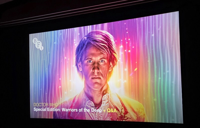 To start, there was Saturday, which was all about Doctor Who. Funnily enough, that’s what Saturday was about on my last London trip, too! In fact, this Saturday was all about Doctor Who in the exact same way as that trip in that all I did was go to a screenings of a Doctor Who adventure at BFI Southbank. As with last time, the screening sold out quickly a few months ago while tickets were only available to BFI members. Thankfully, my friends David and Darren were able to snag a ticket for me this time as they did last time. Hooray! I was actually quite happy when I heard it had sold out because this screening was for the 1984 story Warriors of the Deep, which is generally NOT regarded as a classic by many fans (unlike Terror of the Zygons last time, as most every fan loves that one). But it stars my favorite Doctor (the Fifth Doctor, played by Peter Davison) and my favorite companion (Tegan Jovanka, played by Janet Fielding), so I was excited! And, as usual, this screening was done to celebrate the upcoming Blu-ray release of Season 21, so we weren’t just watching the regular version of the story we all know and love (or not), but rather a souped-up special edition (which I can confirm was done VERY well). Unlike last time though, there was no separate screening for a documentary from the Blu-ray set, but we did get to see a montage of clips of some of those extras (not only is there a ton of care put into restoring these classic Who stories on Blu-ray, but there’s also a ton of great new bonus features made for them, so I’m usually more excited for those than for the actual episodes!). This is actually the event that spurred me to plan this quick trip over here (though as you’ll read below, I managed to find some Who fun on Sunday, too) and I’m very glad it worked out!