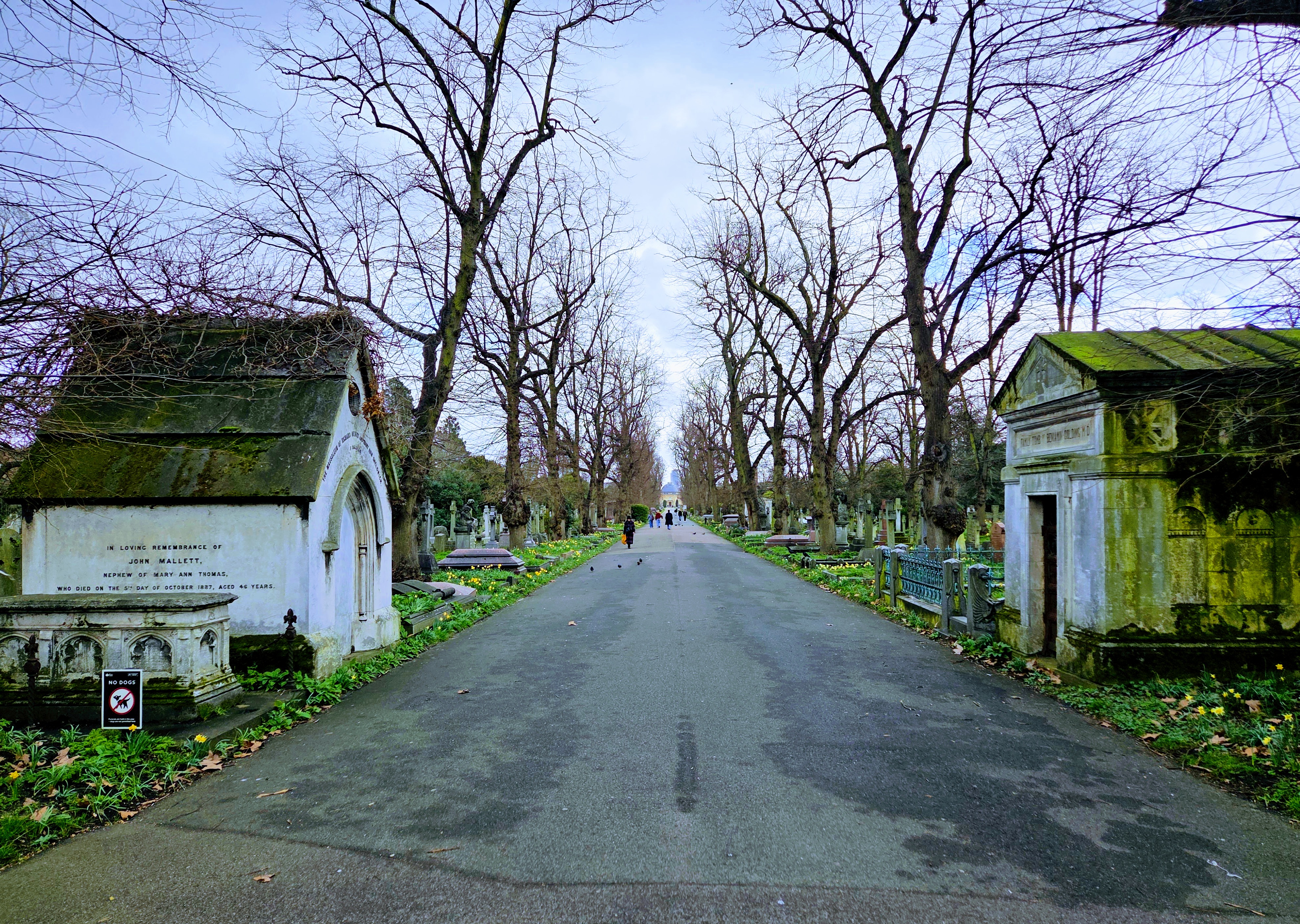 Some information about the cemetery, plus a few photos I took while waiting for the tour to start. The photo at the bottom is a view down the main path (just inside the gate above), looking towards the chapel at the other end.