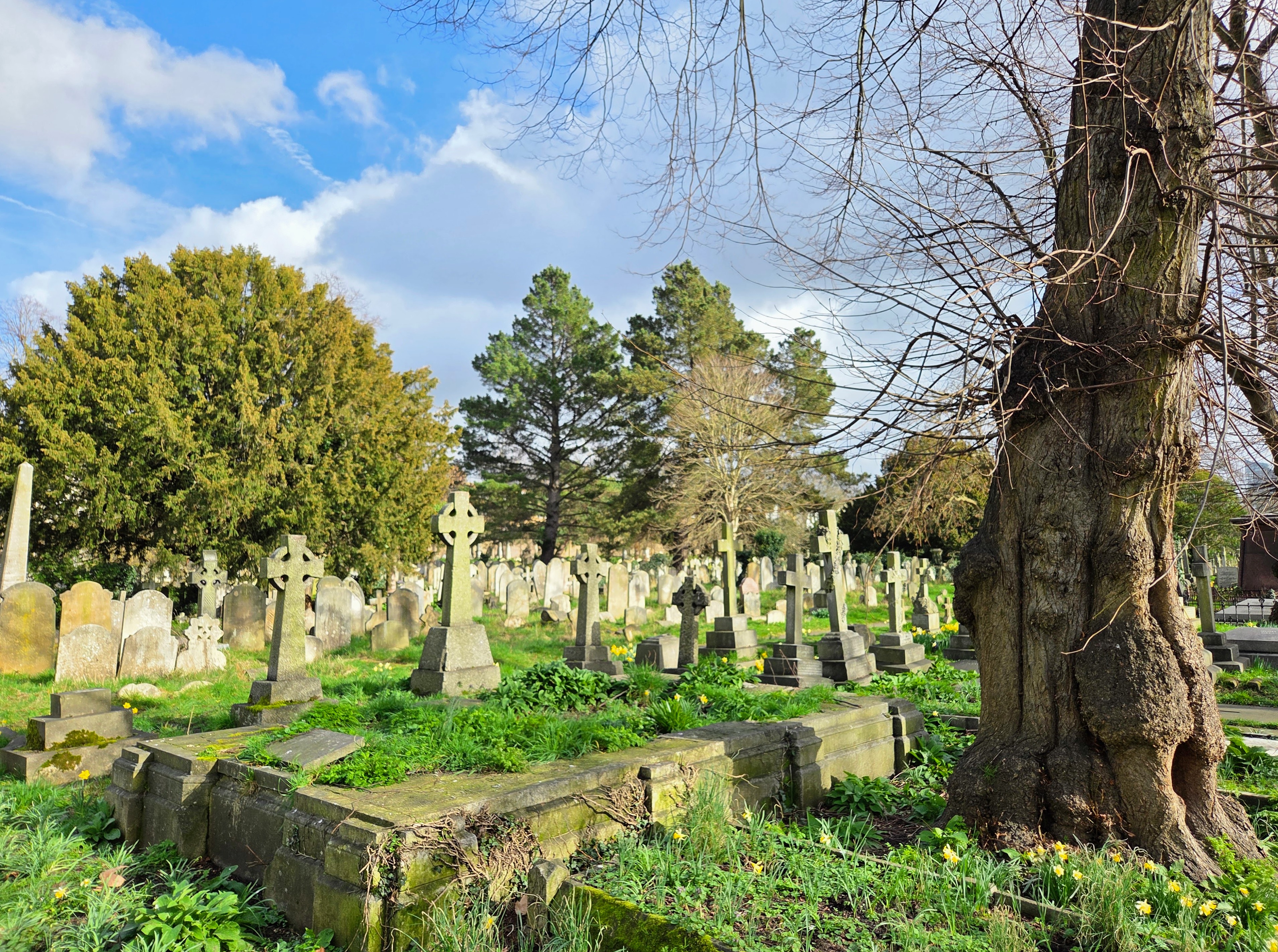 At about 90 minutes, it was long enough to be detailed and to contain tidbits about the cemetery, its history, and some of the people buried there, but not too long to get boring. Although the skies had been pretty grey up to the point I arrived, the sun actually broke through the clouds for a good chunk of the tour and, even when things clouded back over by the end, we still didn’t get rained on. I’ll take that as a win! I had a nice time and got to take some interesting photos, so it was definitely time well spent (and well worth the suggested donation of £10). The tours are offered every Sunday from March – November and can be booked online or in person (note that the website specifies that there’s ALWAYS room for people to just show up without having booked, so that’s what I did).